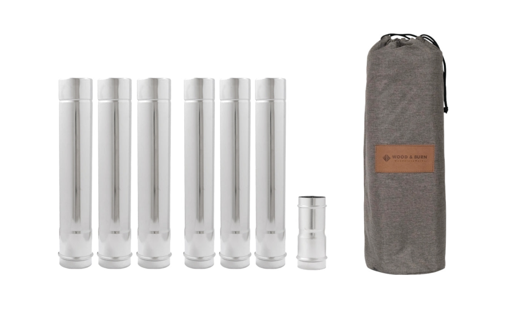 To store the chimney pipes efficiently, you can nest the 75-50mm chimney inside the 80-50mm chimney. This allows for compact and organized storage, saving space when not in use.