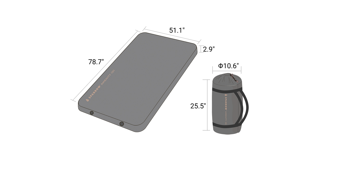 The Amenity - Double is a soft and warm outdoor mat made with Peach-Suede fabric, 2.9"(7.5cm) high-density PU foam, 3D sidewalls, TPU coating, non-slip base, and roll-up storage for ultimate comfort and convenience.