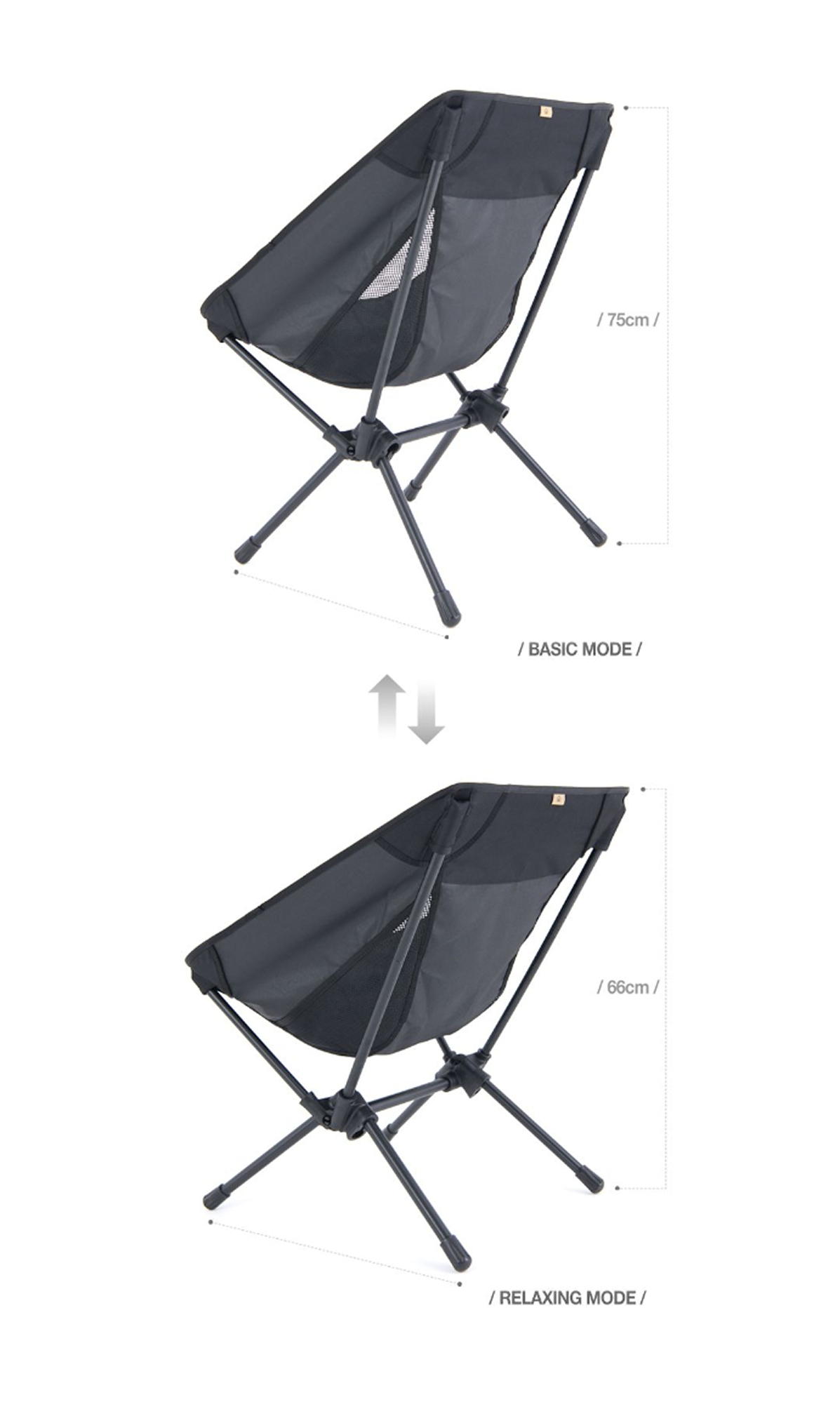 The CVT2 S Chair offers a spacious yet portable design with a 25.2" seat height and 19.7" width for enhanced comfort. Its two-step reclining system and ergonomic wrap-around form provide full-body support and relaxation.
