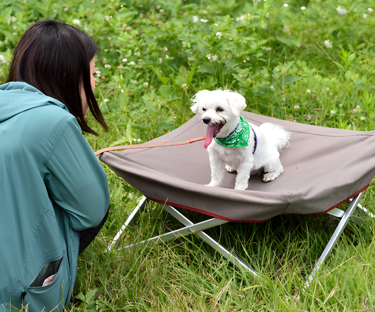 This Dog Cot features a stainless steel frame with an elevated polyester-canvas sleeping surface designed for pets. It is lightweight, durable, and easily folds for convenient storage and transport.