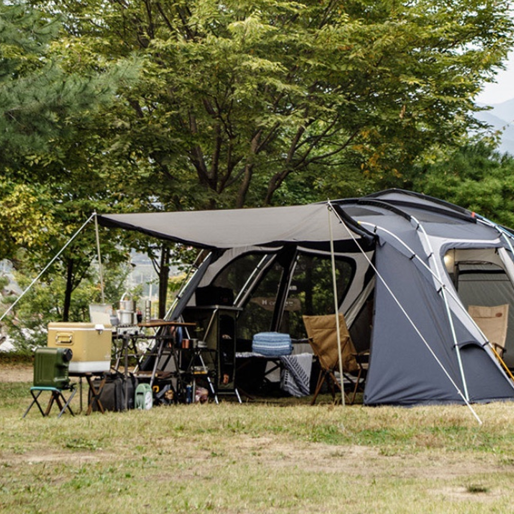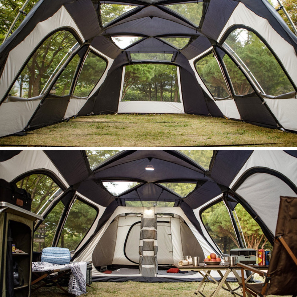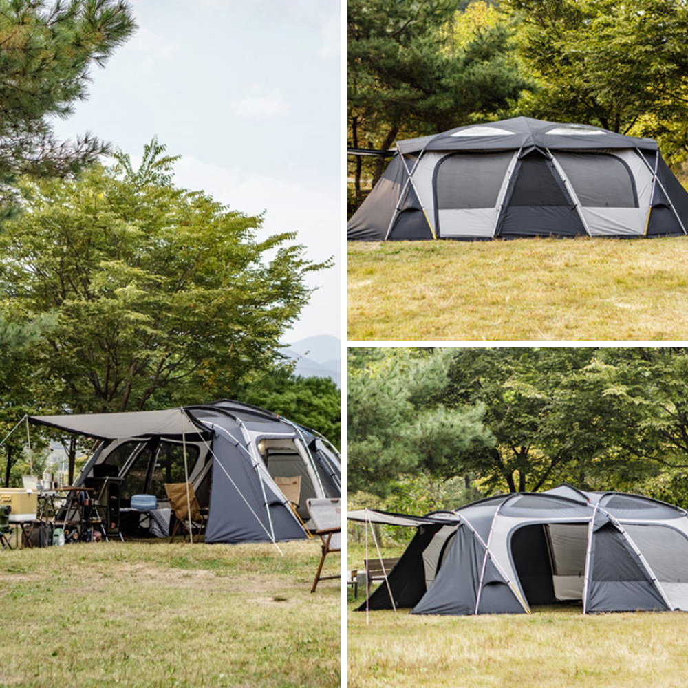 A premier flagship tent boasting a massive 283-inch (7.2m) length, engineered with high-density 210D Oxford fabric and Teflon coating for maximum durability. It features an advanced 6-panel Sky View system and a reinforced Ridge Pole structure, ensuring unparalleled stability and a vast, light-filled living area for large groups.