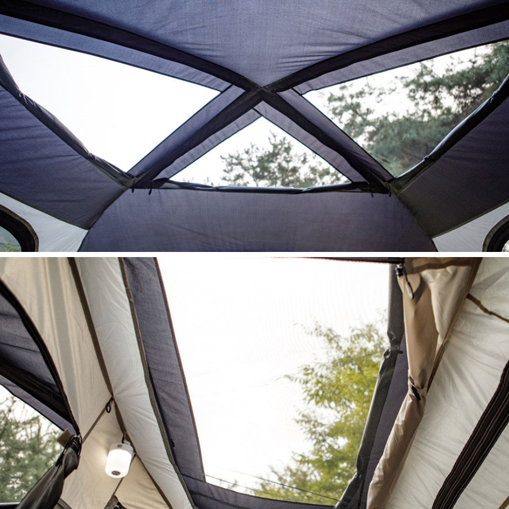 Engineered with four-sided opening doors on the inner tent, allowing for customized airflow and versatile access from any direction.
