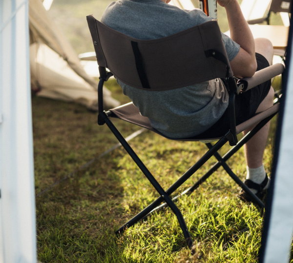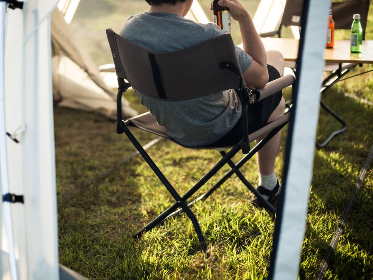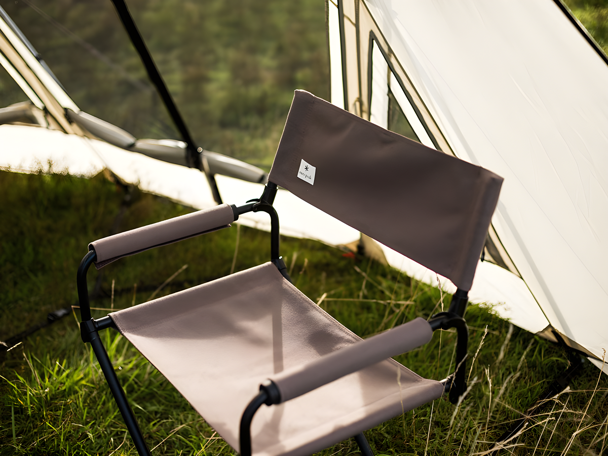 The Folding Chair is a foldable chair with an aluminum frame and canvas seat, designed in Japan. It is suitable for both camping and indoor use, offering easy portability and storage.