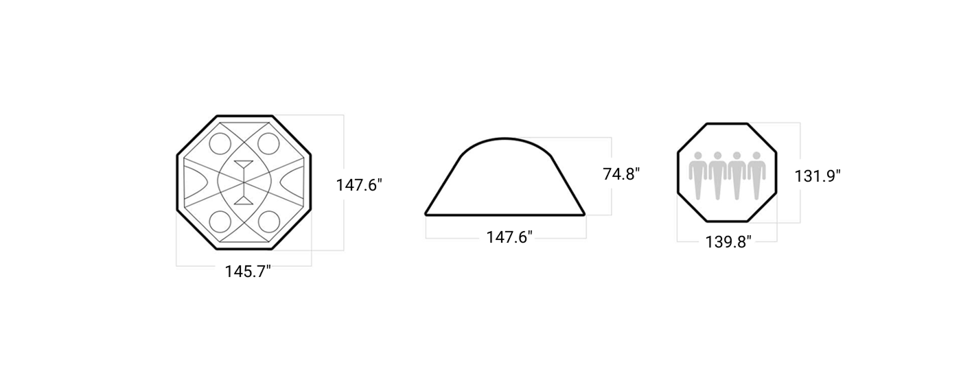 • Ground Sheet: 139.8"(W) × 131.9"(D)
