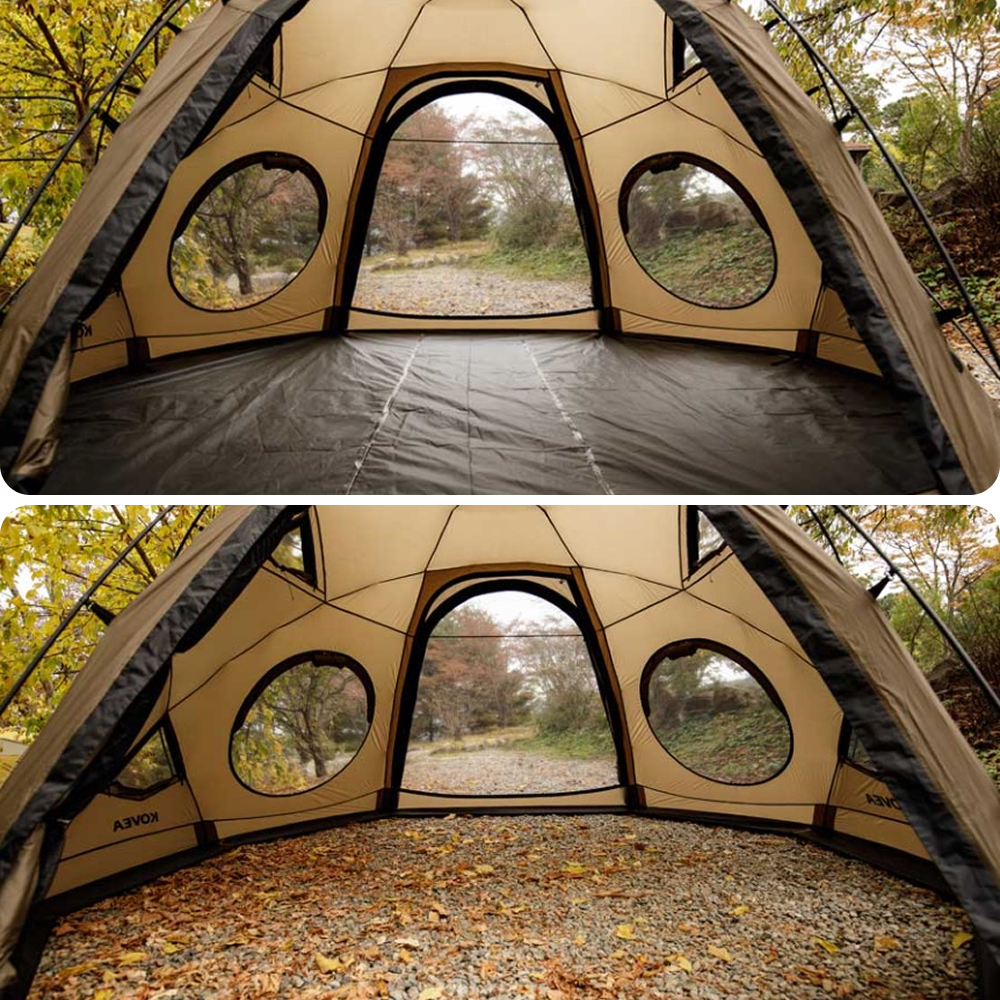 The included groundsheet is designed to be quickly and easily attached to or removed from the shelter structure. This flexibility allows you to freely choose whether to use the floor based on your specific camping needs, maximizing the shelter's utility.