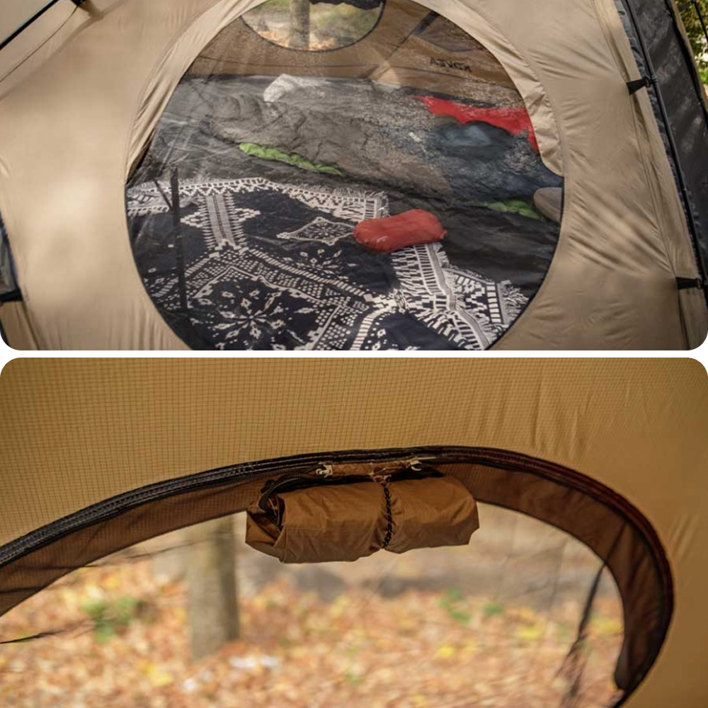 The shelter features strategically placed circular mesh windows that deliver a remarkable feeling of openness and space. These windows ensure easy ventilation for a comfortable interior while allowing you to enjoy scenic views free from insects.