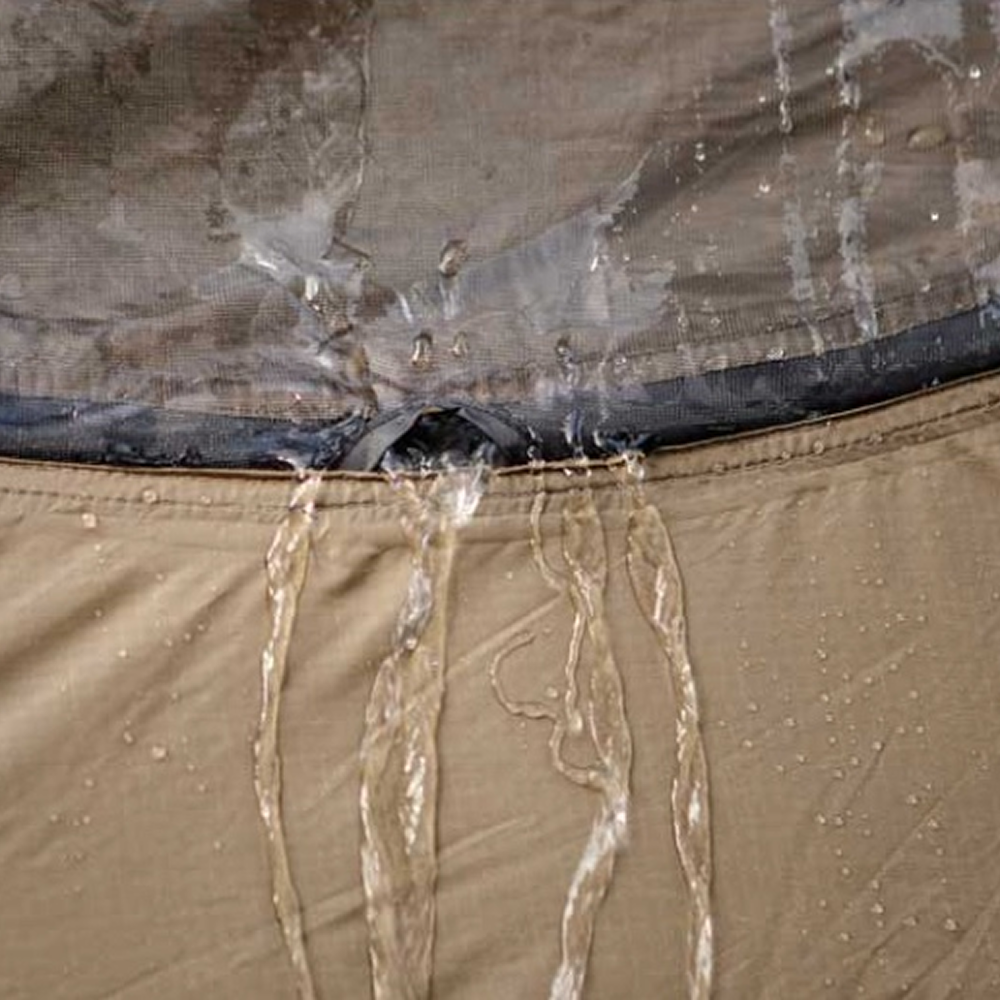 The base of the circular mesh windows is equipped with subtle water holes (drainage ports). This design ensures that during rain, water naturally drains to the outside, preventing pooling inside the shelter and maintaining a dry, comfortable environment.