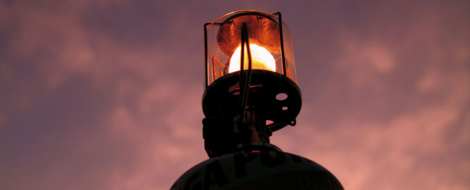 Conçue au Japon, la GigaPower Lantern Auto est une lanterne compacte alimentée à l'isobutane avec un globe en verre et une base en acier inoxydable.