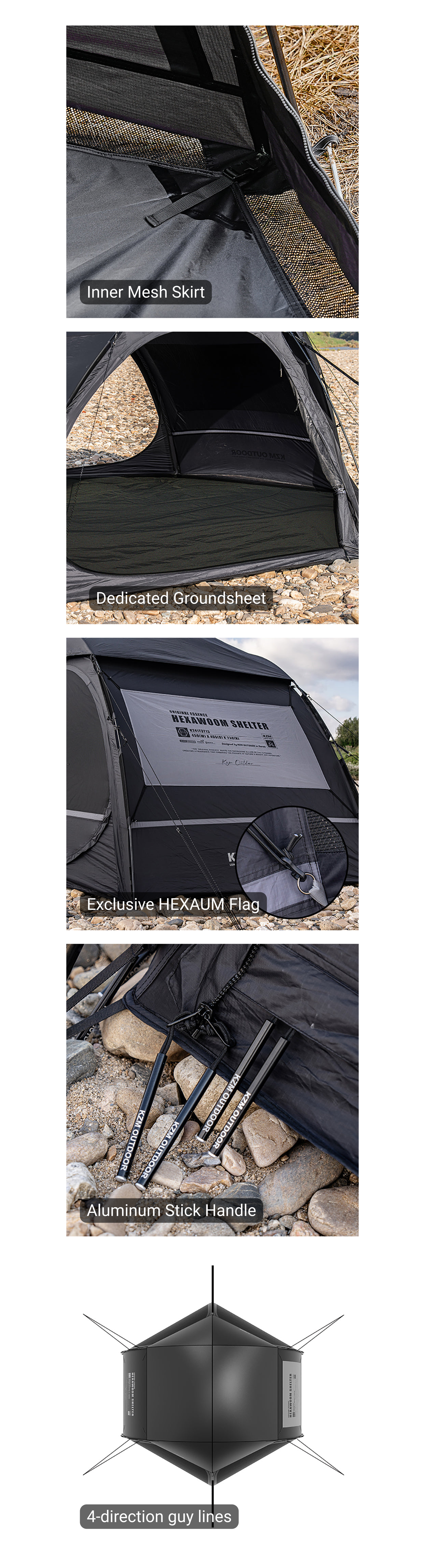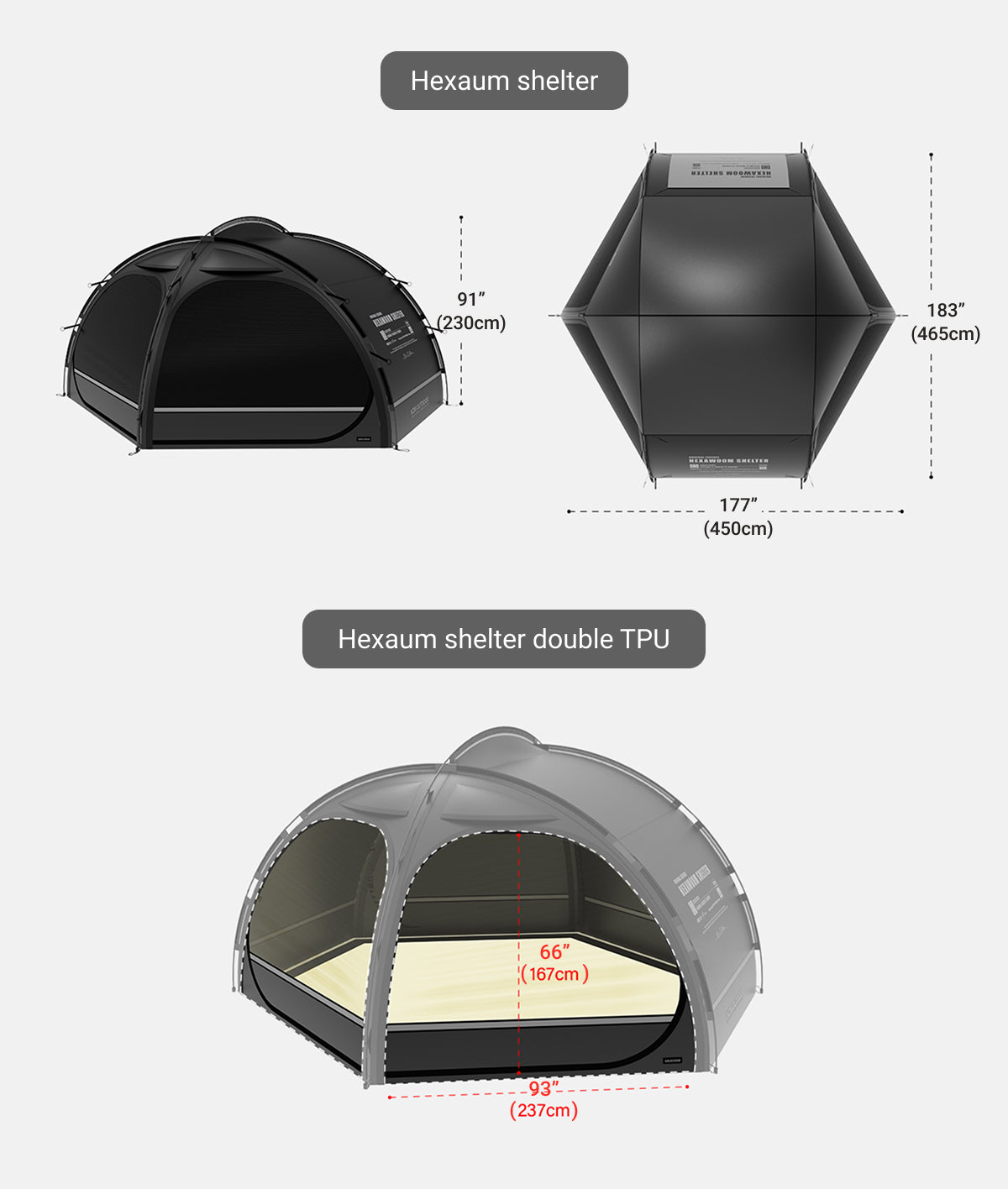 • Hexaum Shelter Double TPU Package : Main Body * 1, Carry Bag * 1