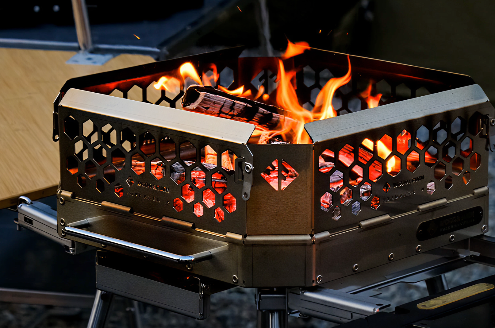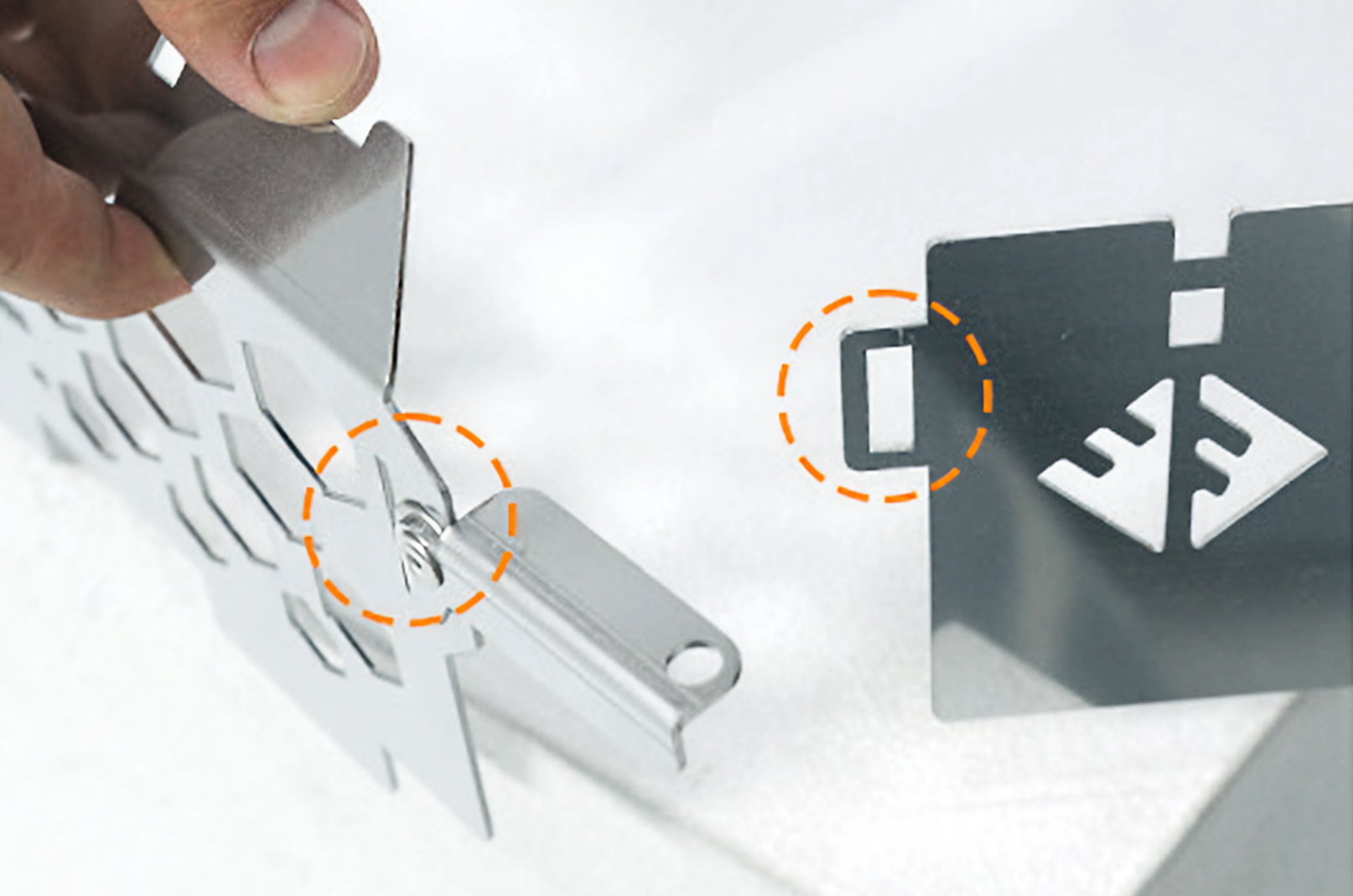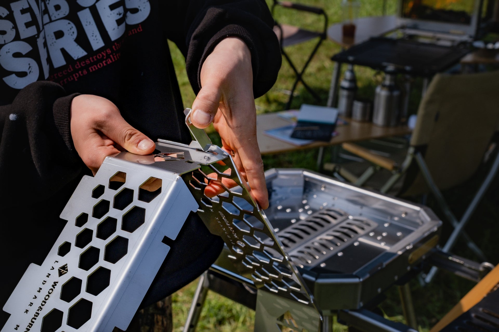 The simple slot system allows for quick and hassle-free setup, suitable for beginners and seasoned campers alike. The perforated panels and combustion plates are intuitive to assemble and dismantle.