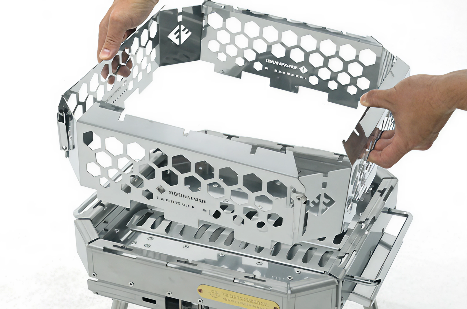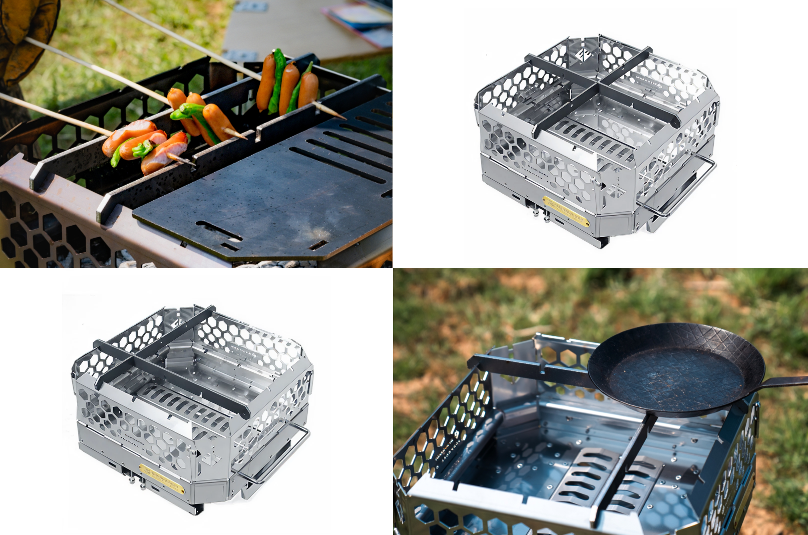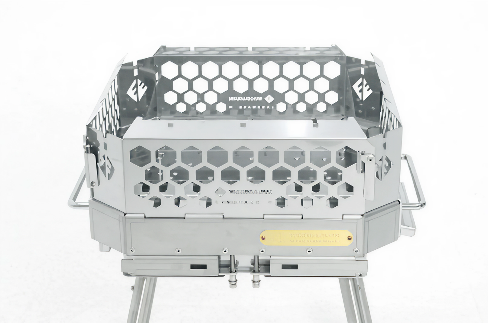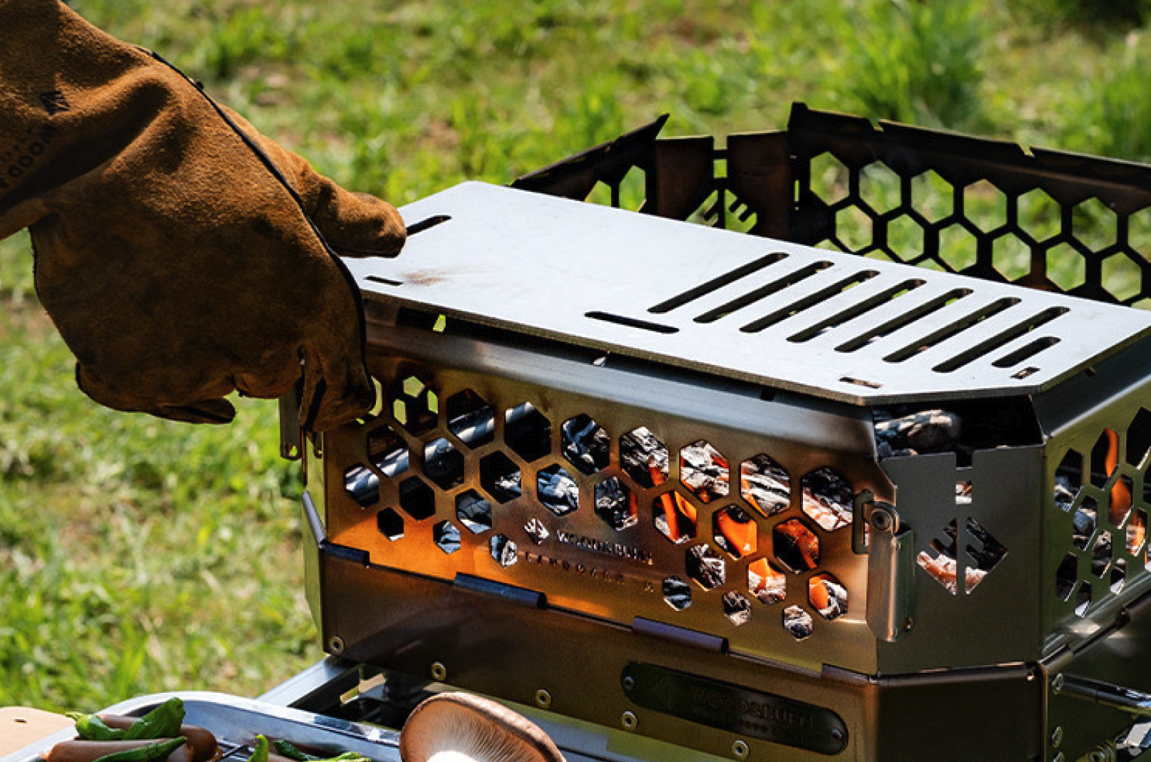 The simple slot system allows for quick and hassle-free setup, suitable for beginners and seasoned campers alike. The perforated panels and combustion plates are intuitive to assemble and dismantle.