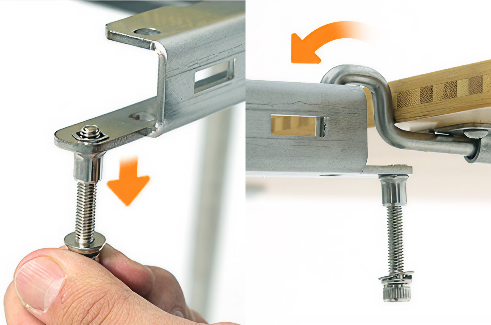 Lower the screw to avoid interference, then hook onto the bracket groove for added versatility.
