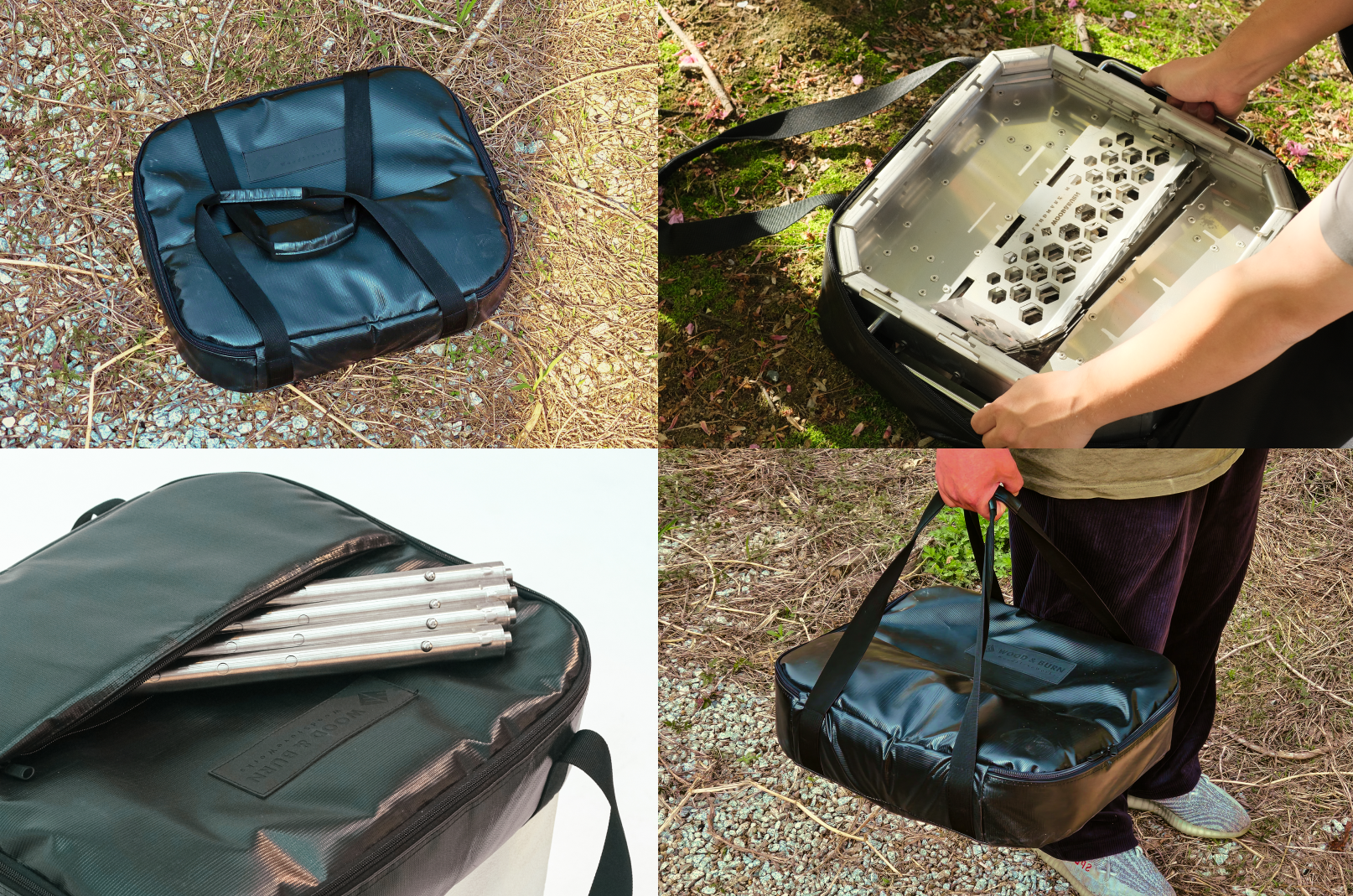 Accommodates the main unit, accessories, and legs for organized storage. Includes an external pocket for 660 adjustable legs, and the central handle design makes it easy to carry while preventing content shifting.