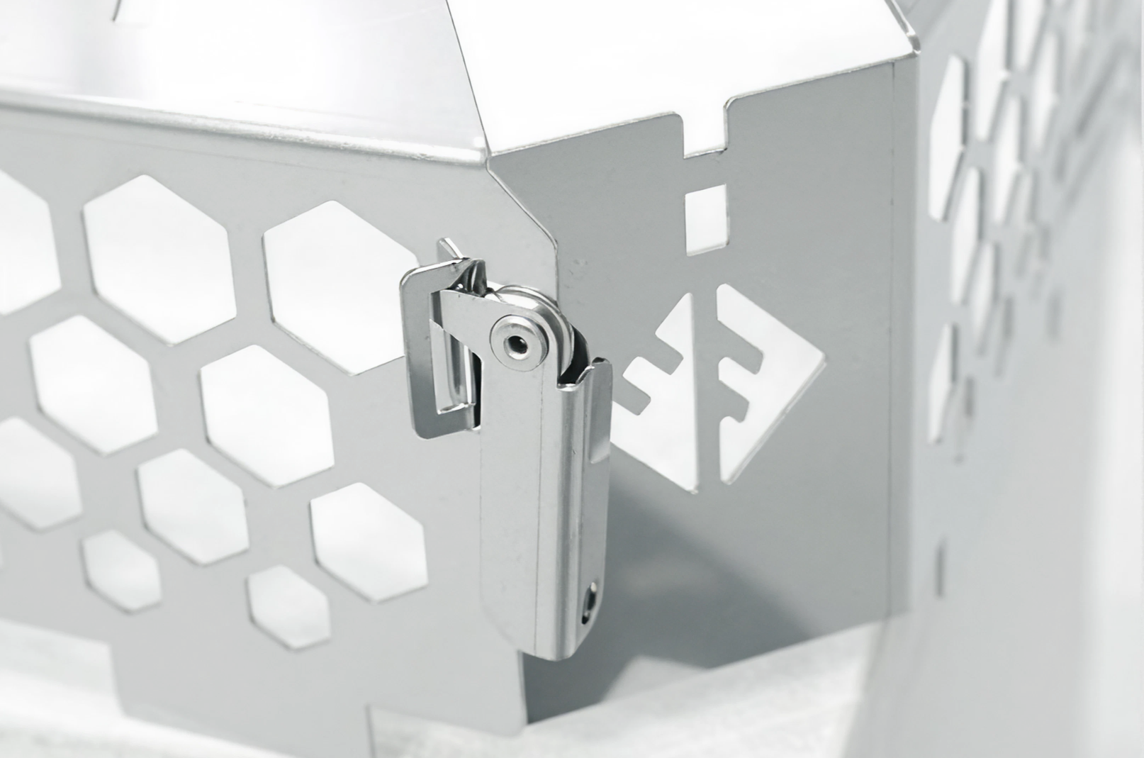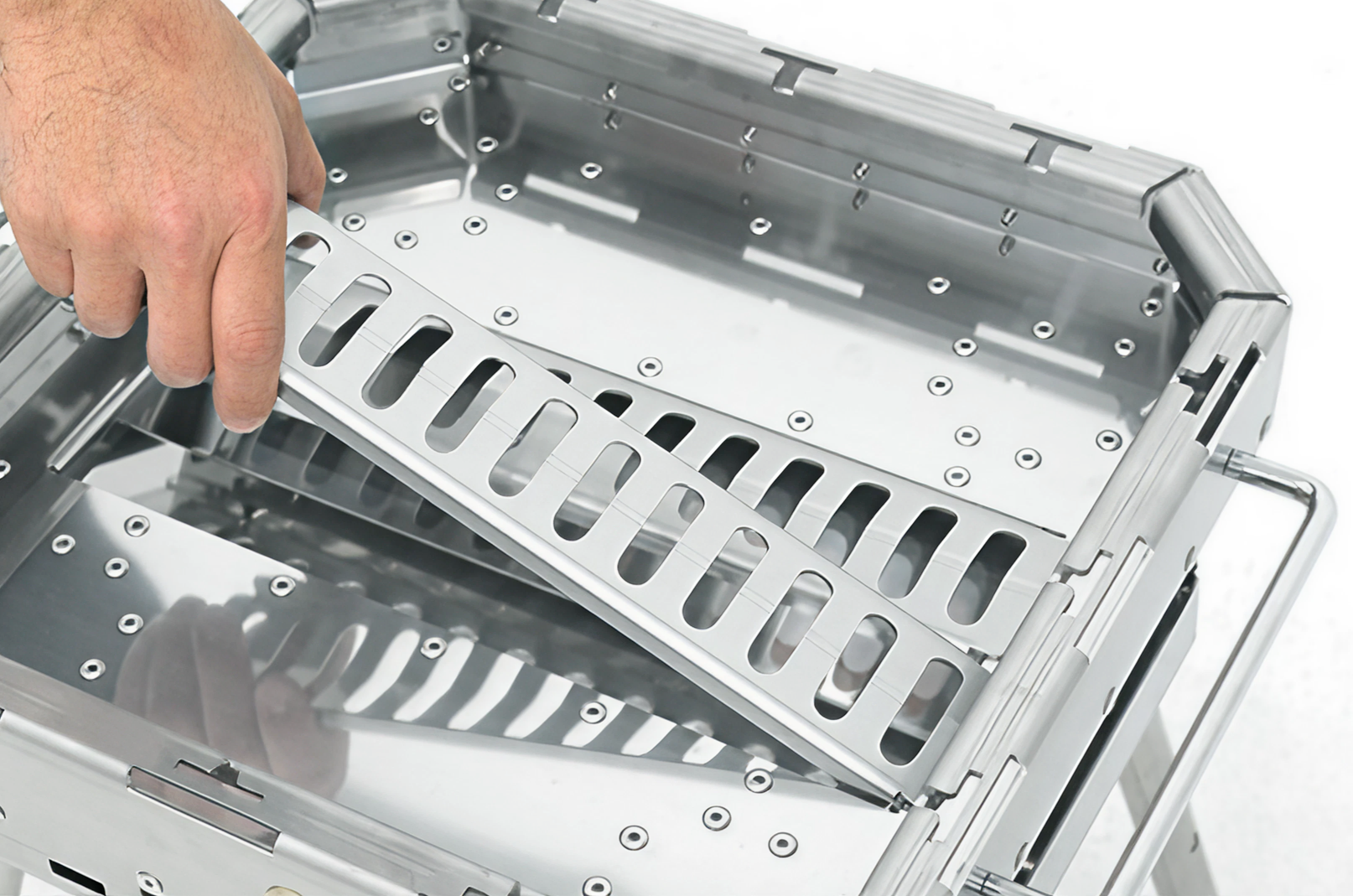 All accessories are precisely fixed into the frame slots, remaining secure even during transport.