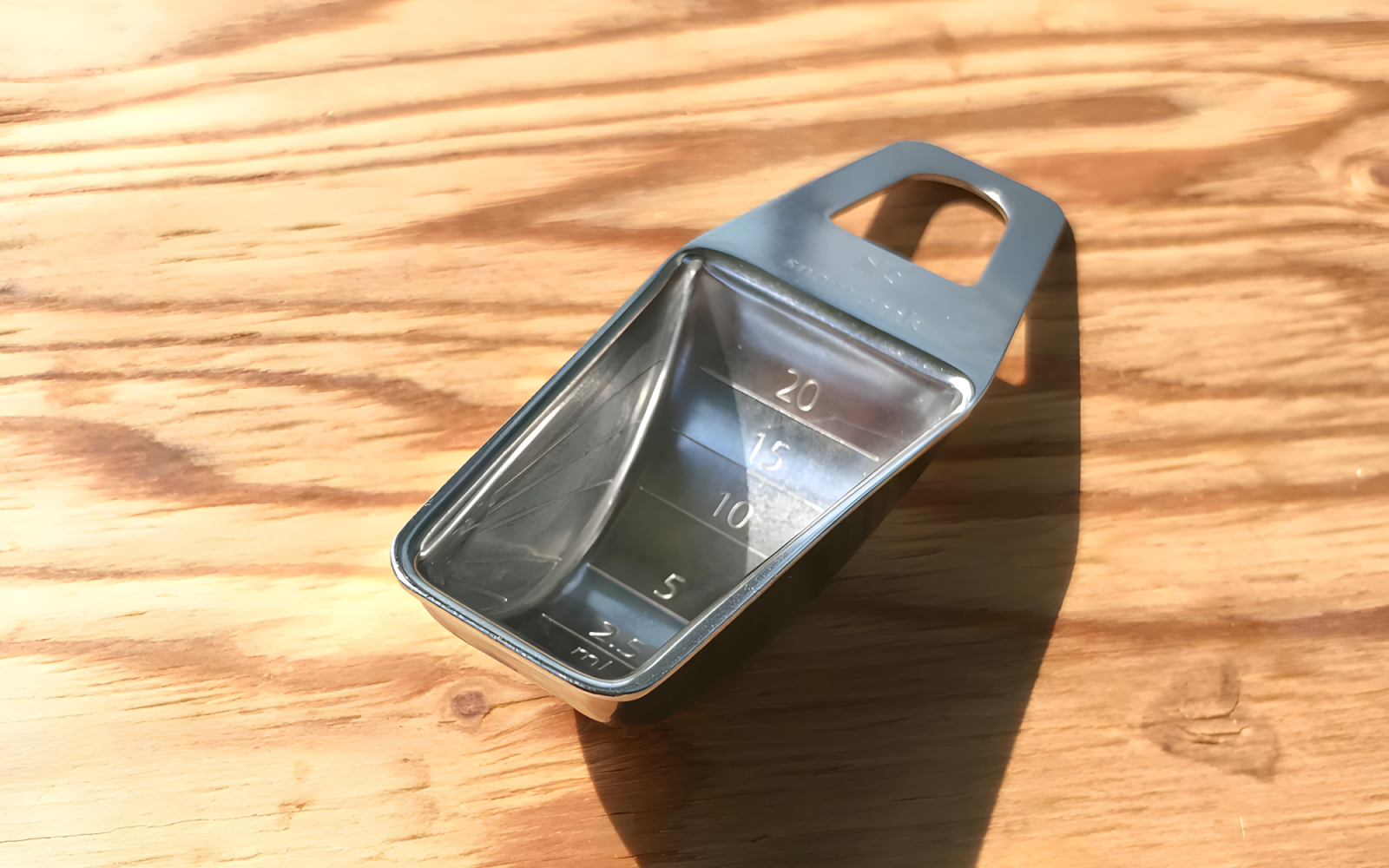 Manufactured in Japan, the Measuring Spoon is made of sturdy stainless steel. Use it for precise indoor or outdoor cooking, whether measuring coffee, liquid or oats. The Measuring Spoon features measuring lines and a handle for hanging, and with a two-tablespoon capacity, it’s an essential kitchen tool.