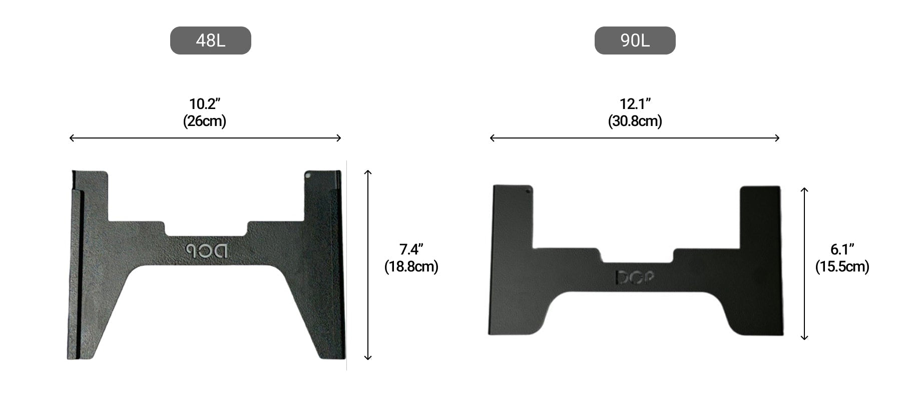 • 90L: 12.1"(W) × 6.1"(D) (30.8 × 15.5cm)