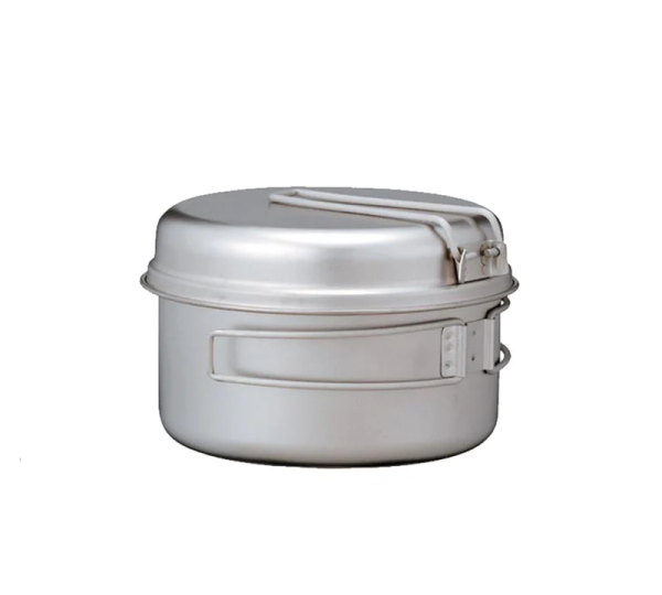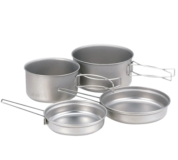 This cookset is crafted from Japanese titanium and designed as a nested, space-efficient system of pots and pans tailored for outdoor use. The folding handles and stacking capability help minimise bulk while maintaining quality cooking functionality.
