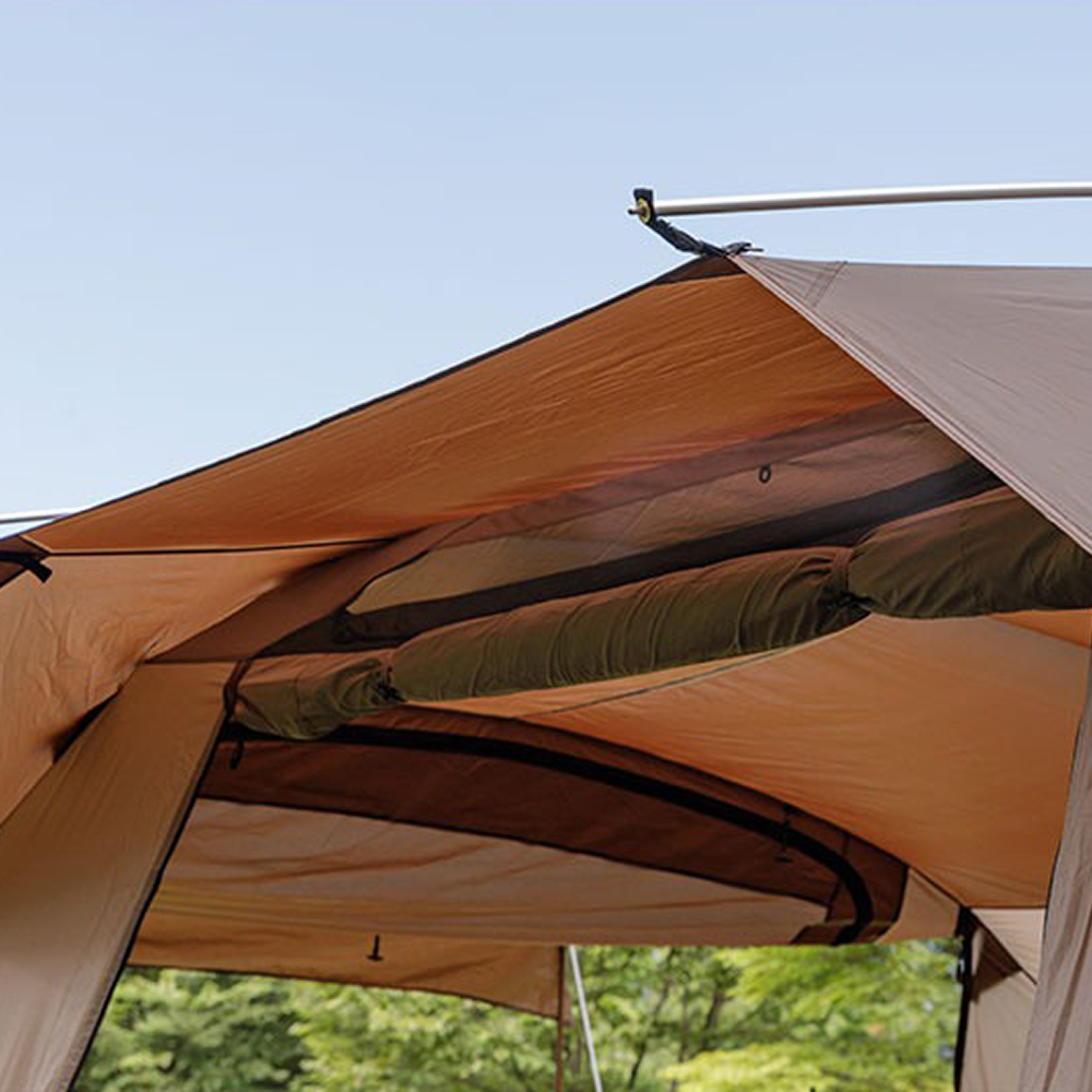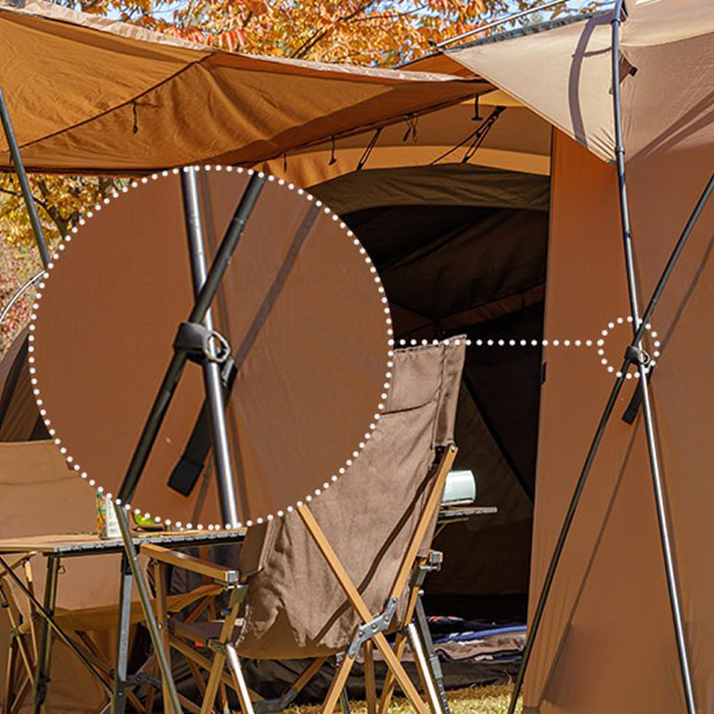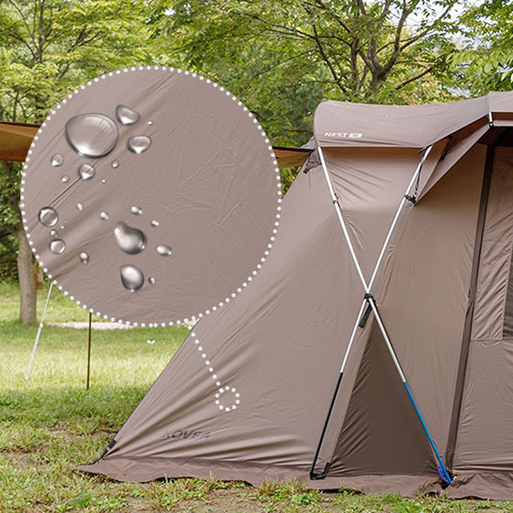 The Nest W uses two ridge poles to create a functional awning, providing extra shade and rain protection. This smart design expands usable space and improves comfort in various weather conditions.