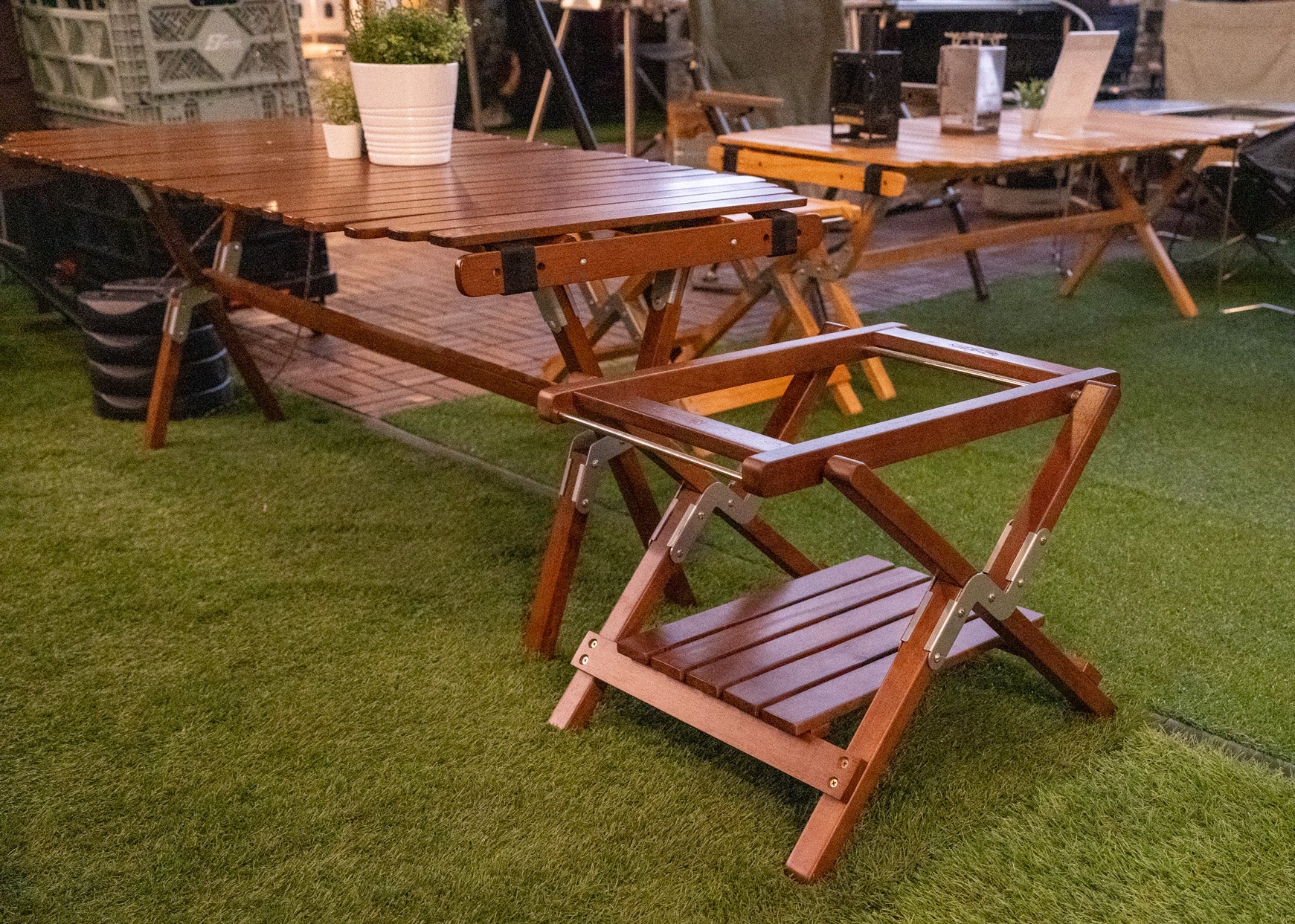 At a height of 38cm, it perfectly complements our Premium Hardwood Roll Table and Shelf for a unified and stylish setup.