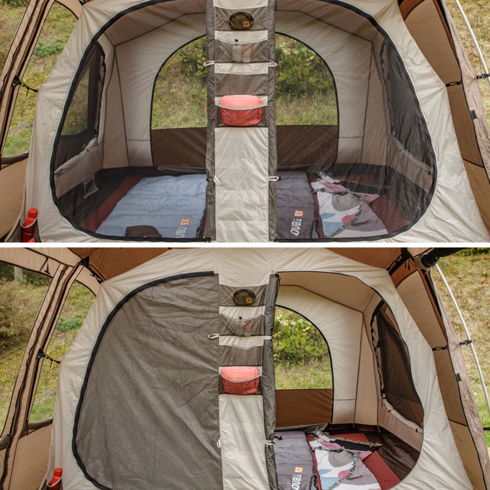 Features customizable inner tent doors that can be opened selectively to control airflow and privacy based on your camping environment.