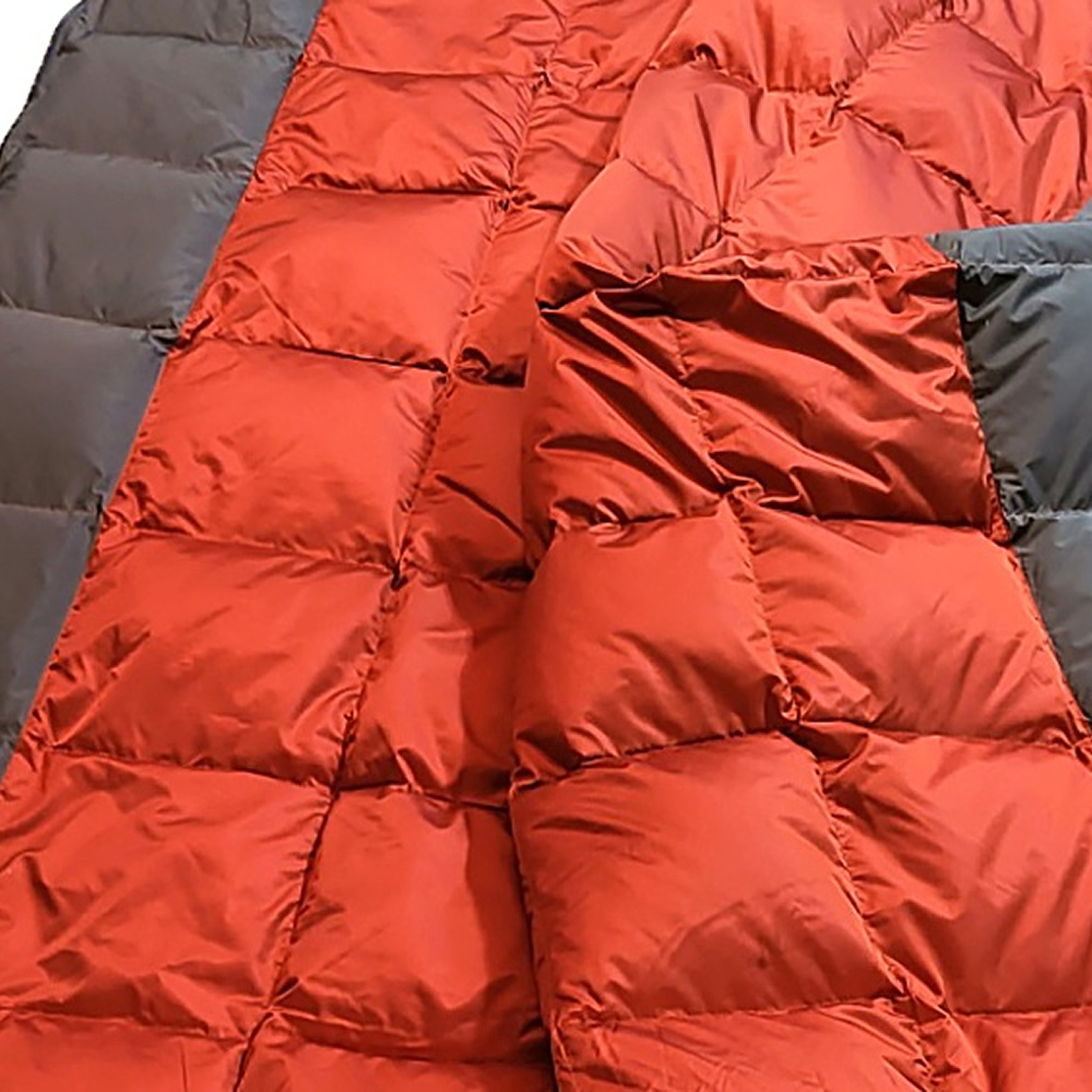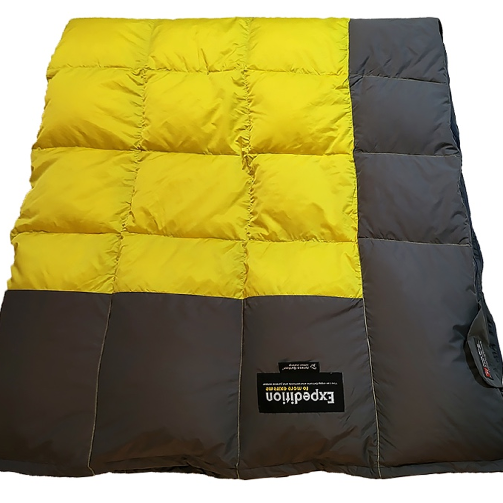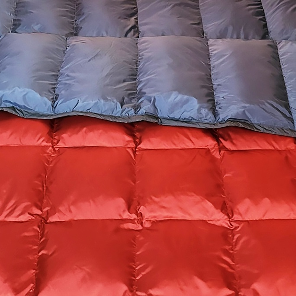 The blanket is constructed with a cross-directional grid stitch pattern, preventing the down fill from shifting or clumping over time.