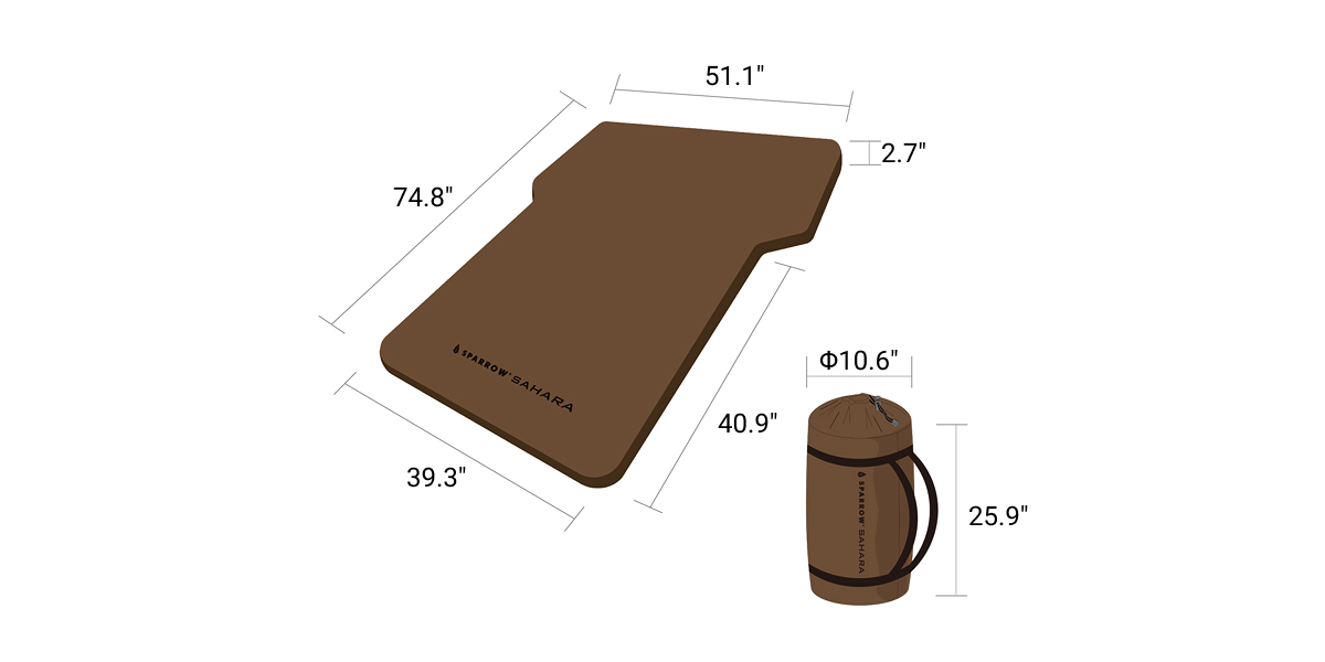 The Sahara Multi Mat is built with high-density PU foam for outstanding durability and resilience. With a 7cm(2.7") thickness and an impressive R-Value of 8, it effectively blocks ground chill to deliver a warm and comfortable night’s sleep.