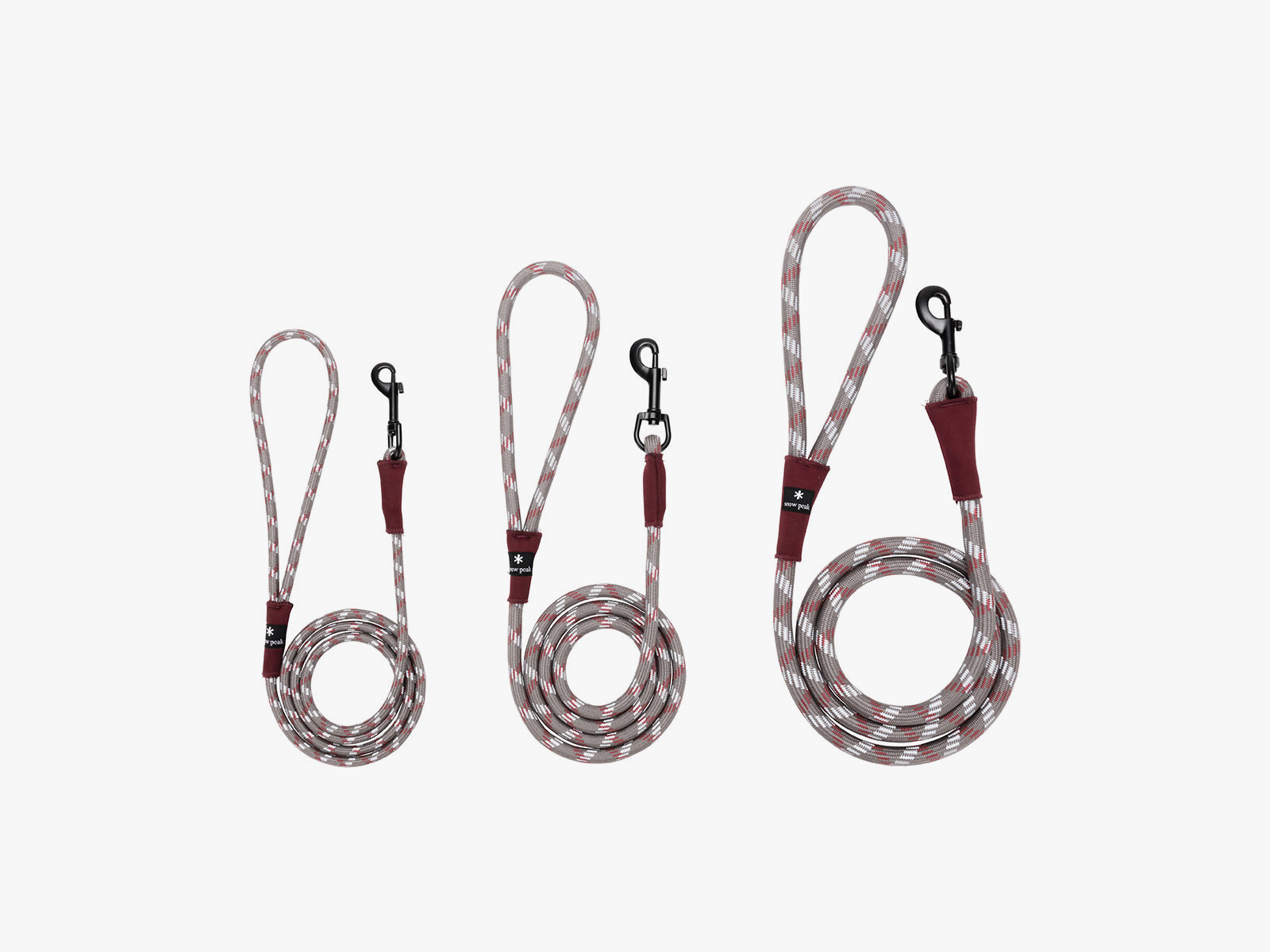 The SP Rope Lead, designed in Japan, is a durable braided leash with a metal clip and neoprene-covered seams. Its thickness varies by size to provide secure handling for different dog weights.