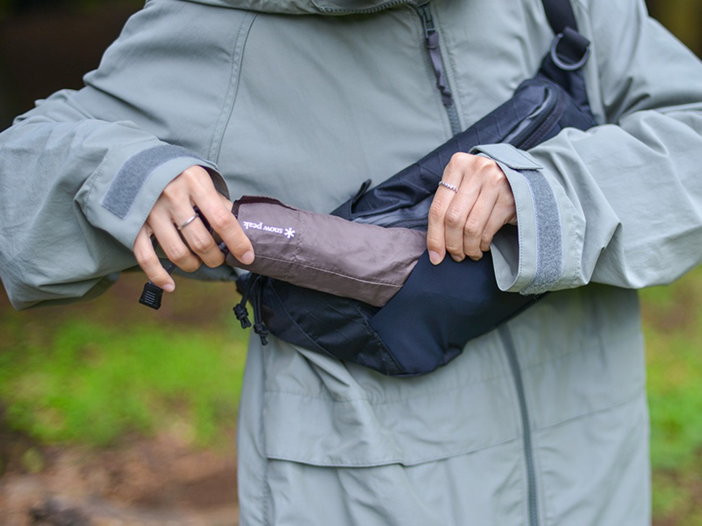 The Ultra-Light Umbrella offers durable weather protection in an ultralight, collapsible form. The design construction is made to collapse under heavy wind gusts to prevent permanent damage with coverage spanning to just under three feet.
