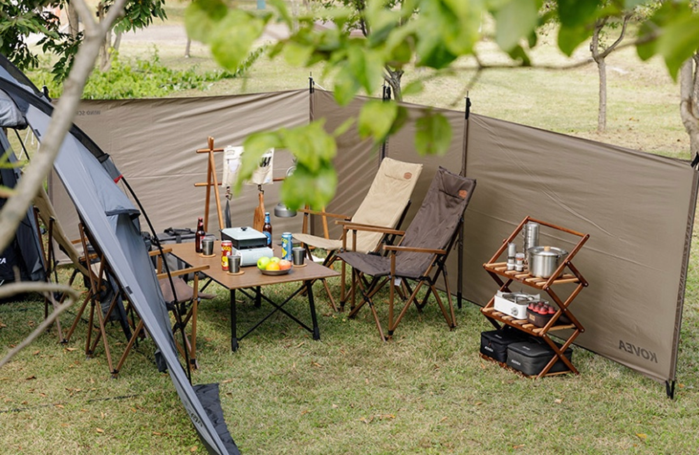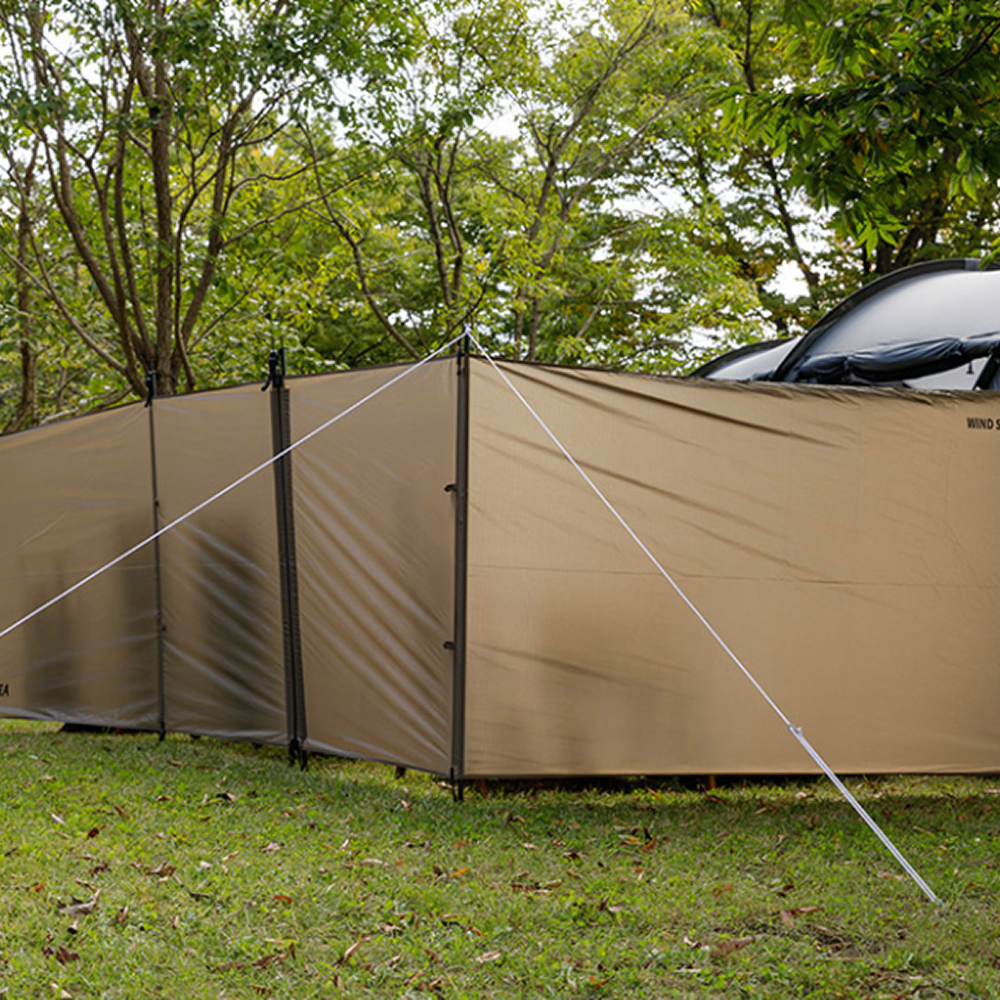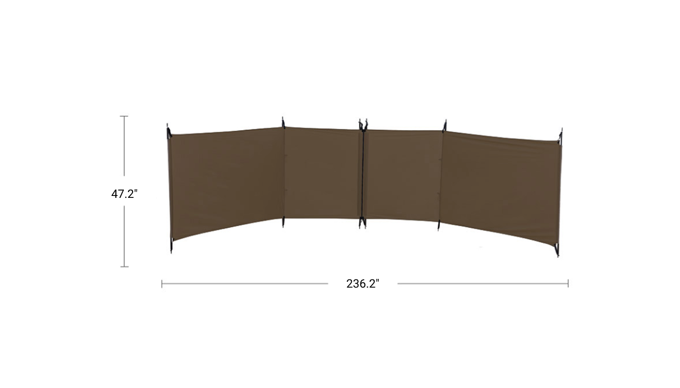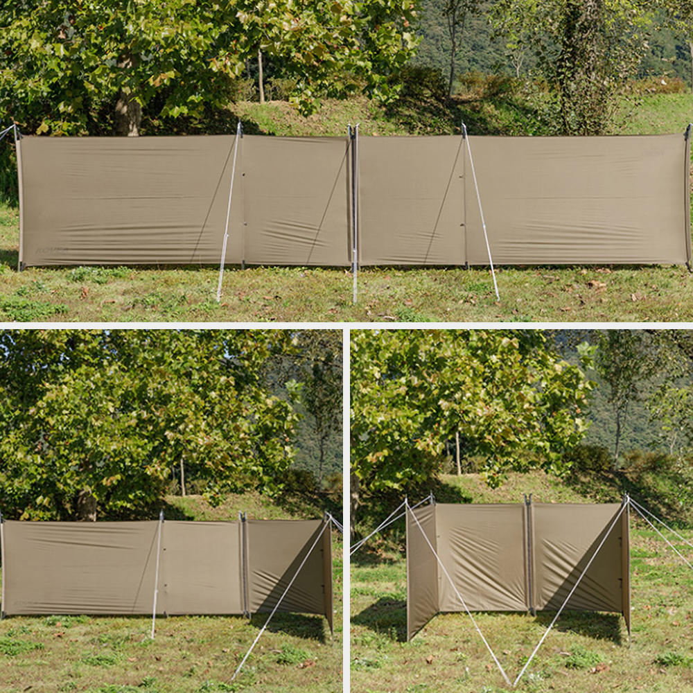 The Wind Screen II creates a customizable outdoor space, featuring versatile buckles and zippers to connect or separate panels, delivering reliable shelter from wind and sun with a stable, ground-anchored setup.