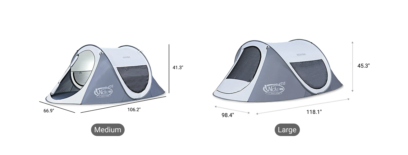 Comfortably fits 2-3(Medium) 3-4(Large) people and features four adjustable mesh windows for excellent airflow and openness. Durable, lightweight fabric with water-repellent protection makes it ideal for camping, picnics, and outdoor relaxation.