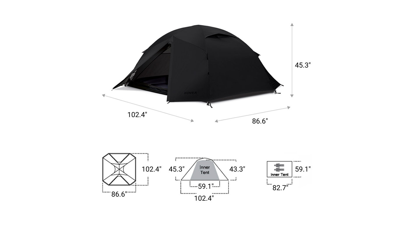 • Inner Tent: 82.7"(W) × 59.1"(D) × 43.3"(H)