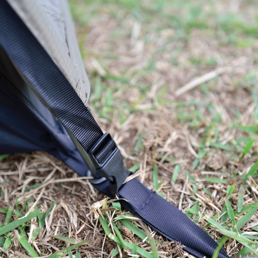 Side Release (SR) buckles are utilized at key connection points between the tent and the flysheet. This convenient buckle system simplifies attachment and detachment, significantly reducing the time required for both setting up and breaking down the tent.