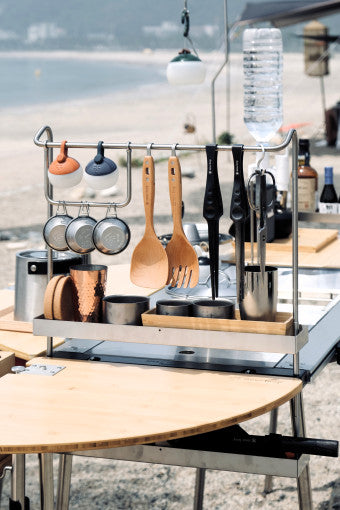 Among the many loved products, My Table is a must-have item for Snow Peak users. And the Stain My Table is especially popular. Henrik Seo's SMT Hanger is a dedicated hanger designed to match Stain My Table. Additionally, you can use various accessories such as the partition box and extension to expand the space on Stain My Table and keep it neatly organized.