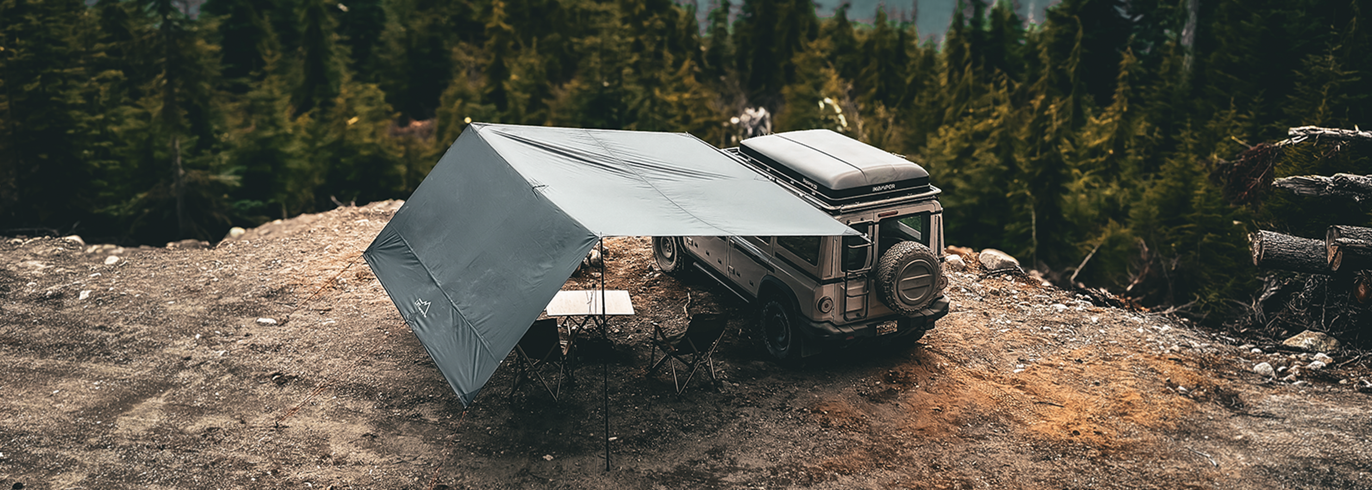 Just like the ES Awning Frame, the tarp is available in two sizes — 2000 and 1300. It can be purchased together with the frame or separately.