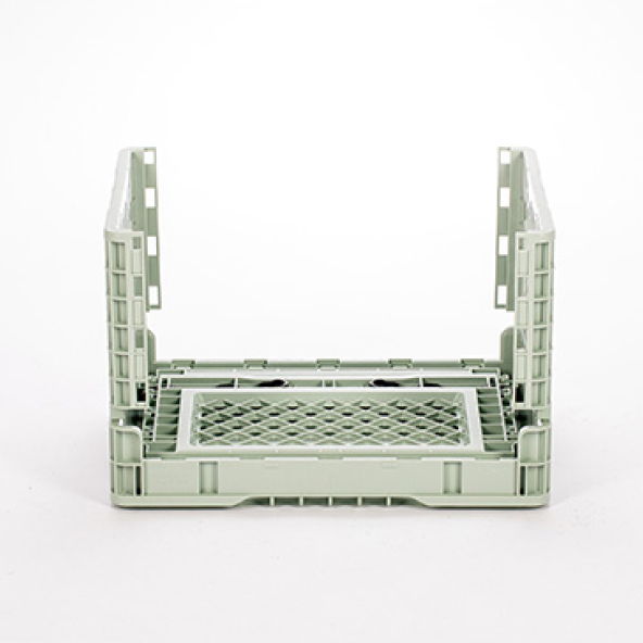 Features an interlocking nesting system for stable vertical stacking, allowing multiple crates to be stacked securely.