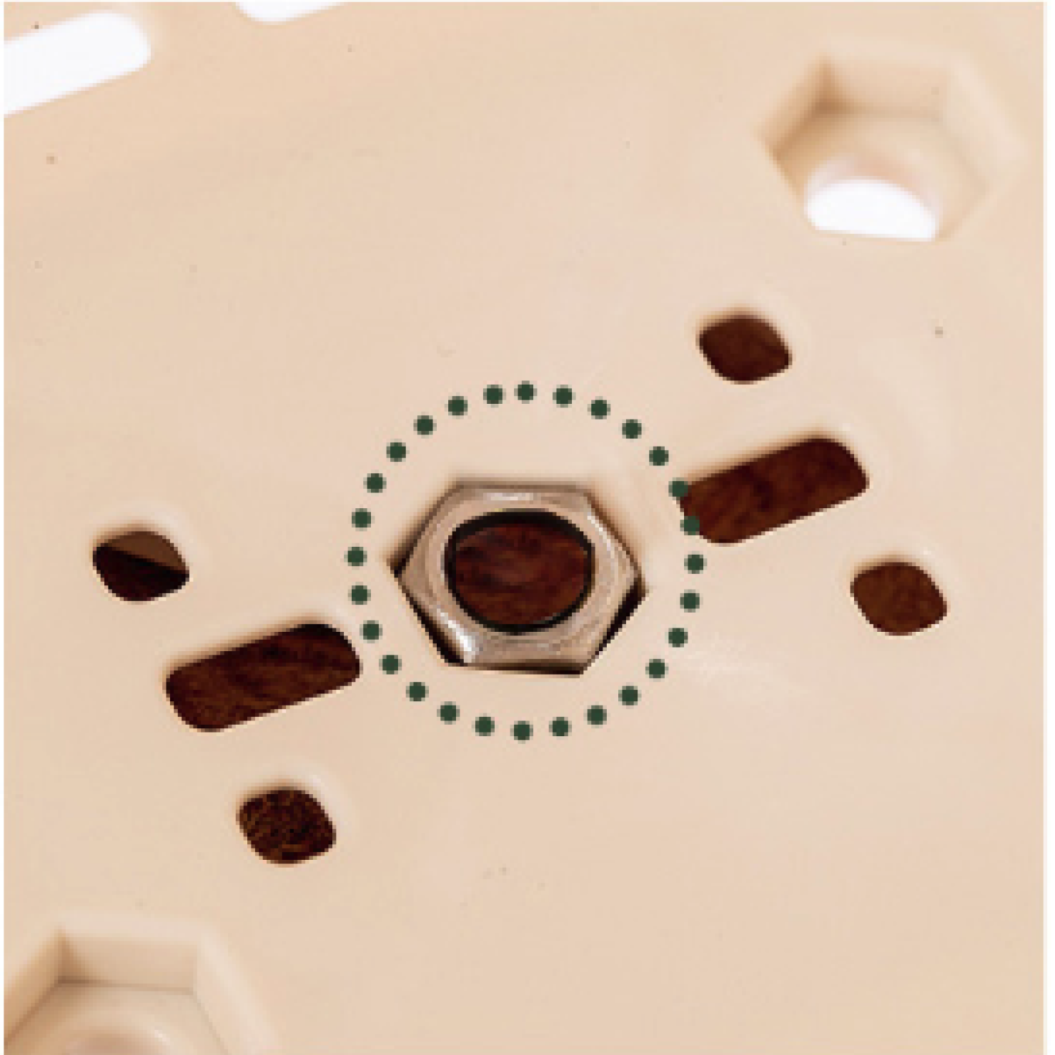 1. Place one nut into each of the nut holes located in the corners of the box. If you need to adjust the hole height, insert a washer into the hole first, then place the nut on top.