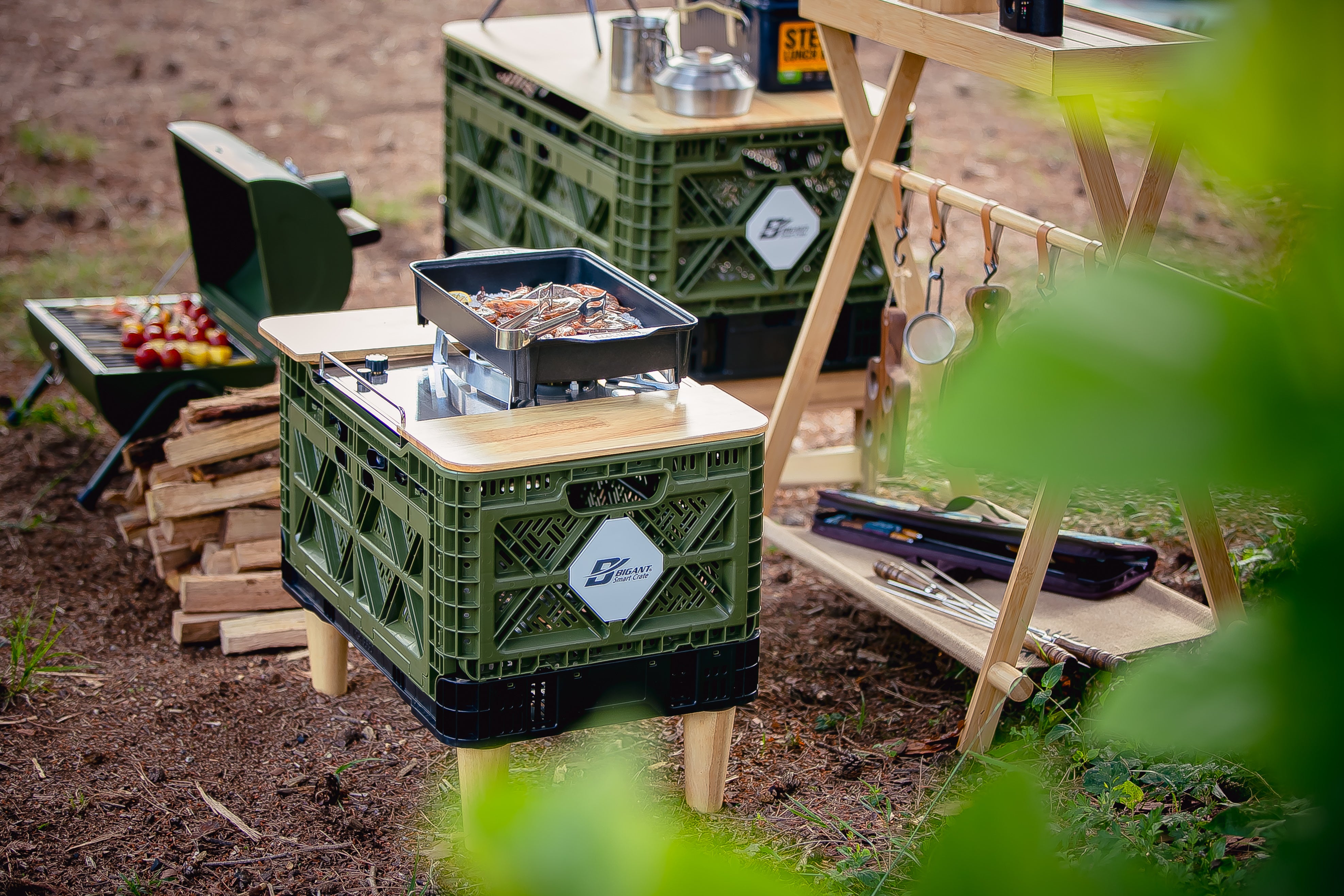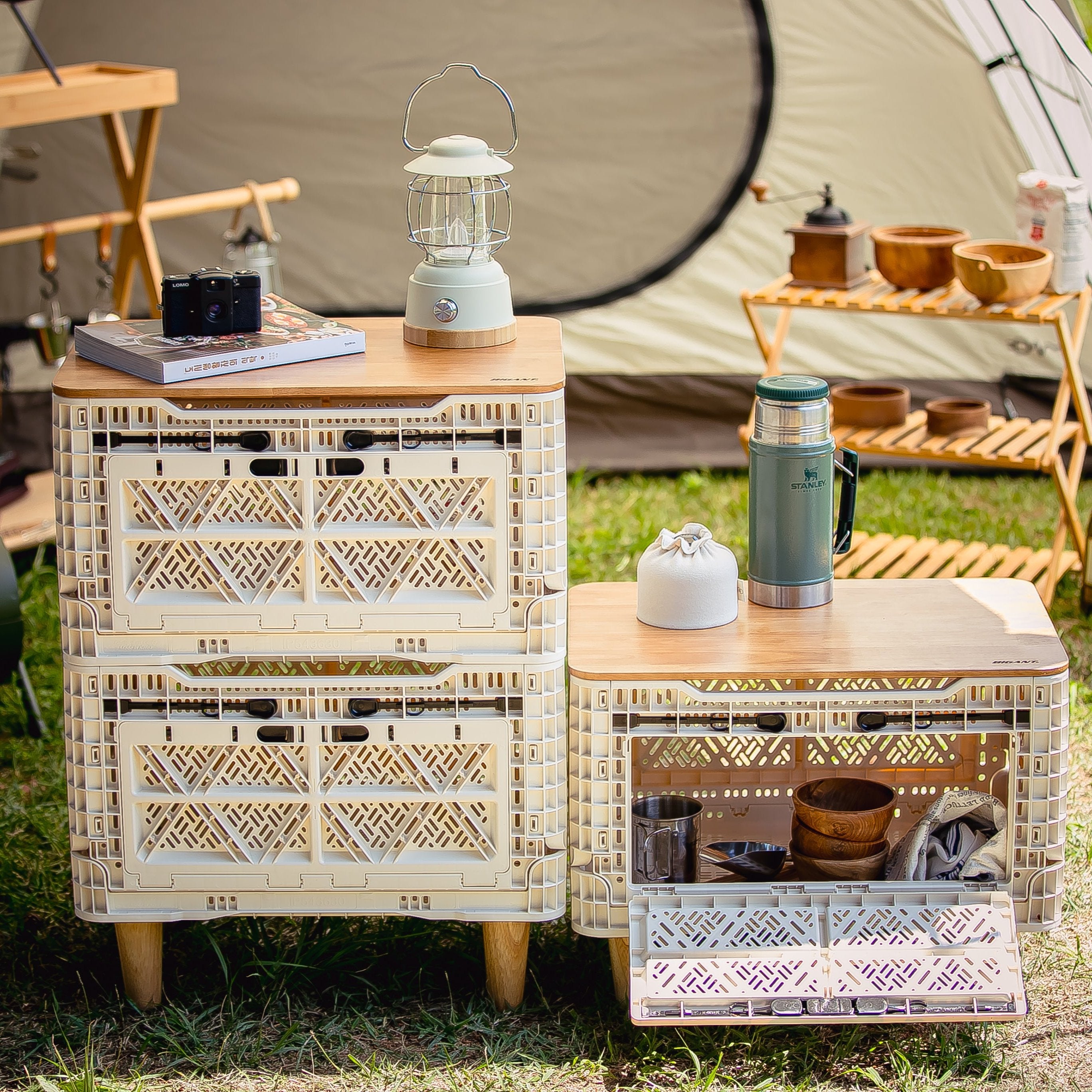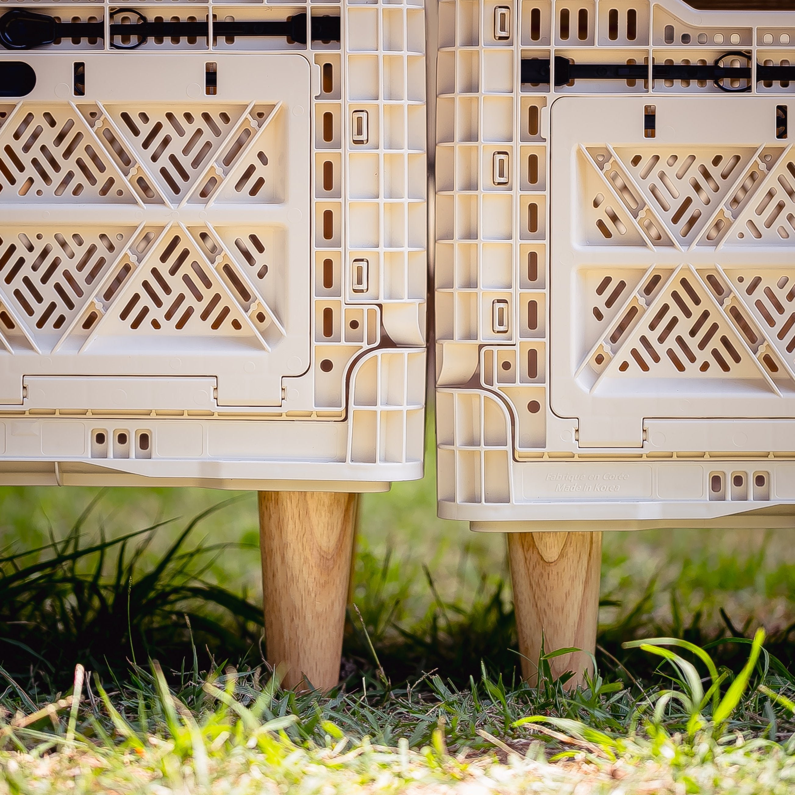 Perfect for outdoor setups, the wood legs provide stability and protect your crates from rough terrain, making them suitable for picnic or camping tables and secure outdoor storage.
