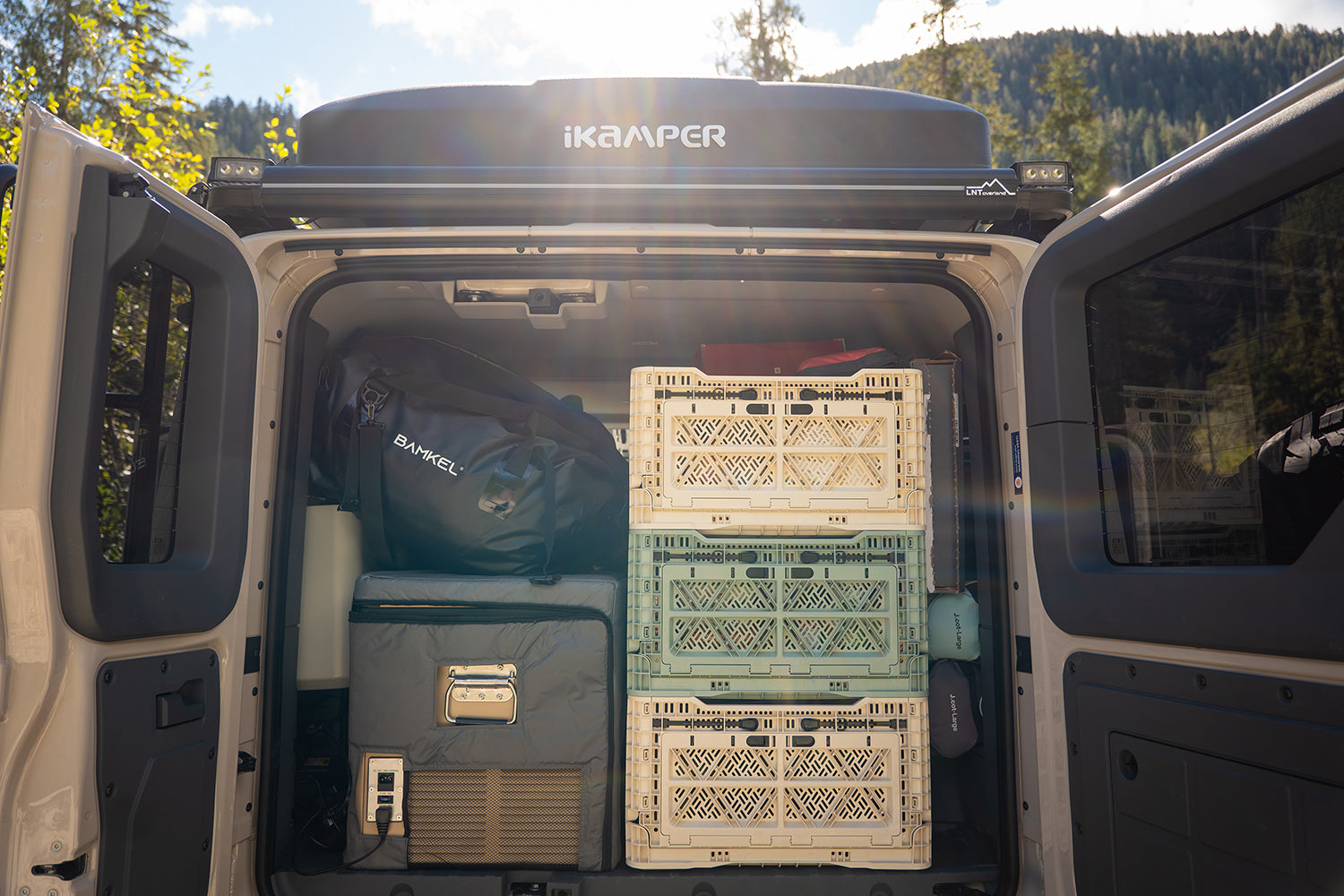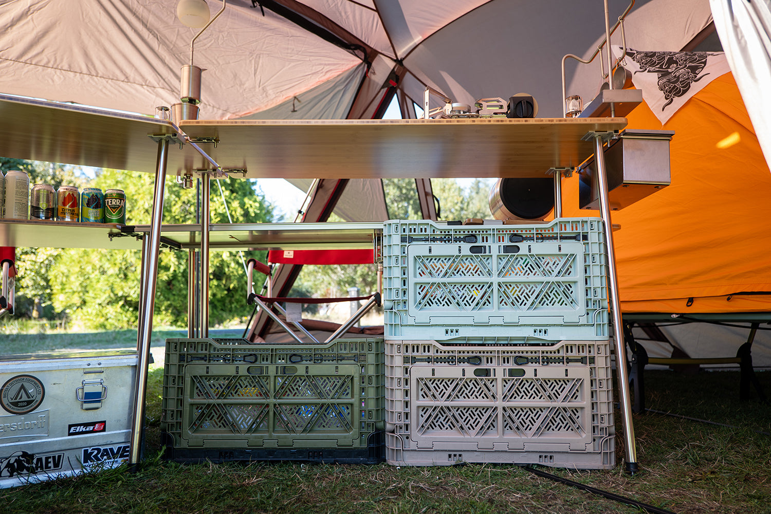 Designed to optimize your car storage space with its collapsible and stackable design, it also doubles as an organizer inside your tent to keep everything neat and accessible. Need a table? Add the rids and transform it into a sturdy surface, or pair it with a burner to create a versatile IGT cooking station.
