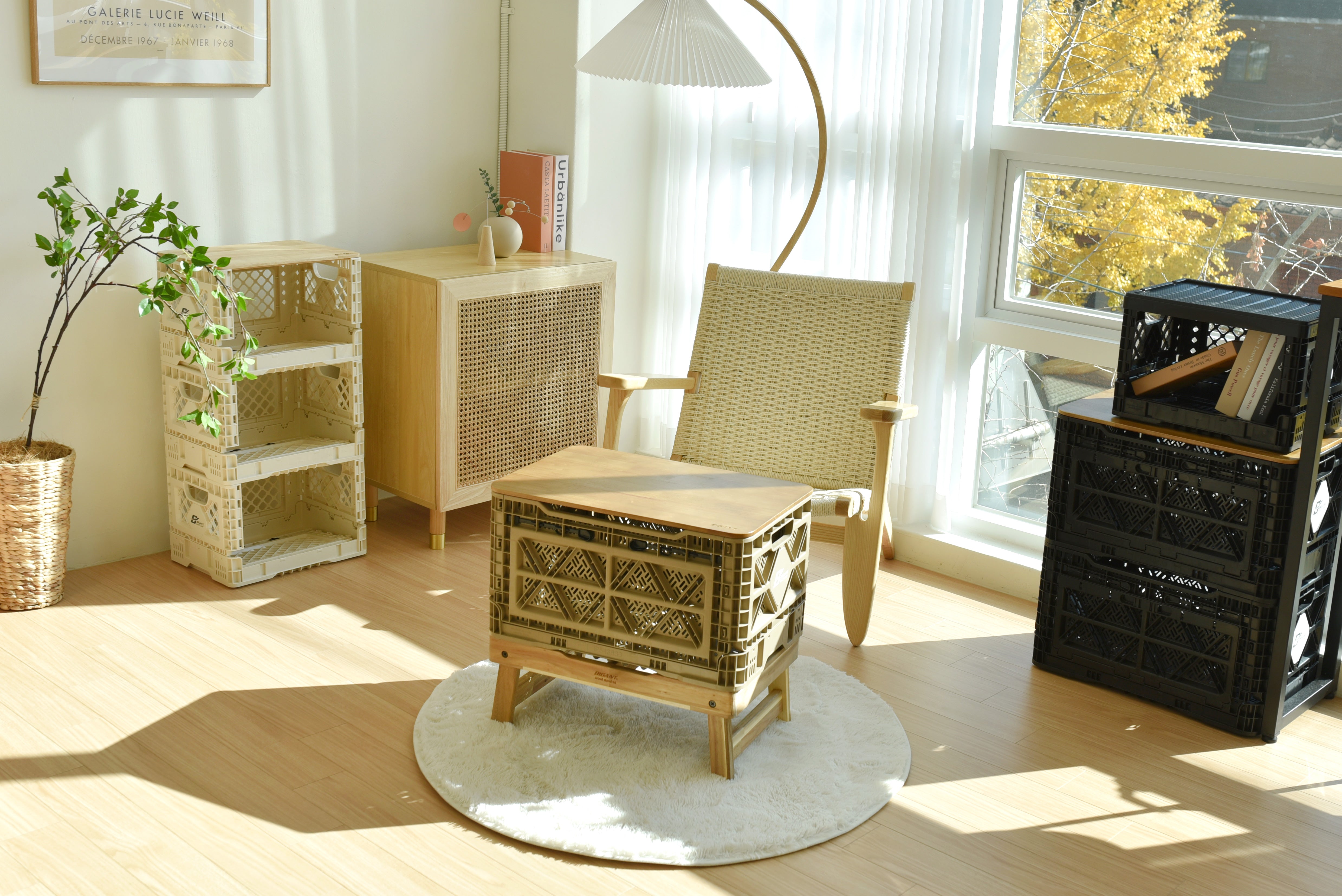 The 48L crate features a collapsible design, folding down to just 2.83 inches for convenient storage when not in use.