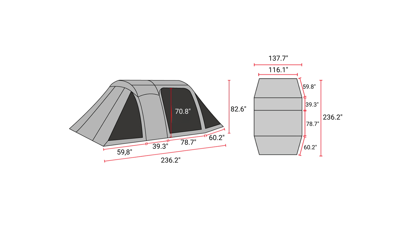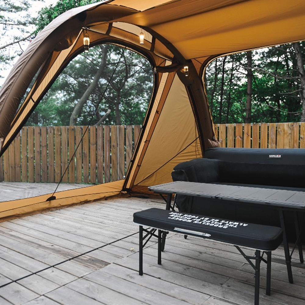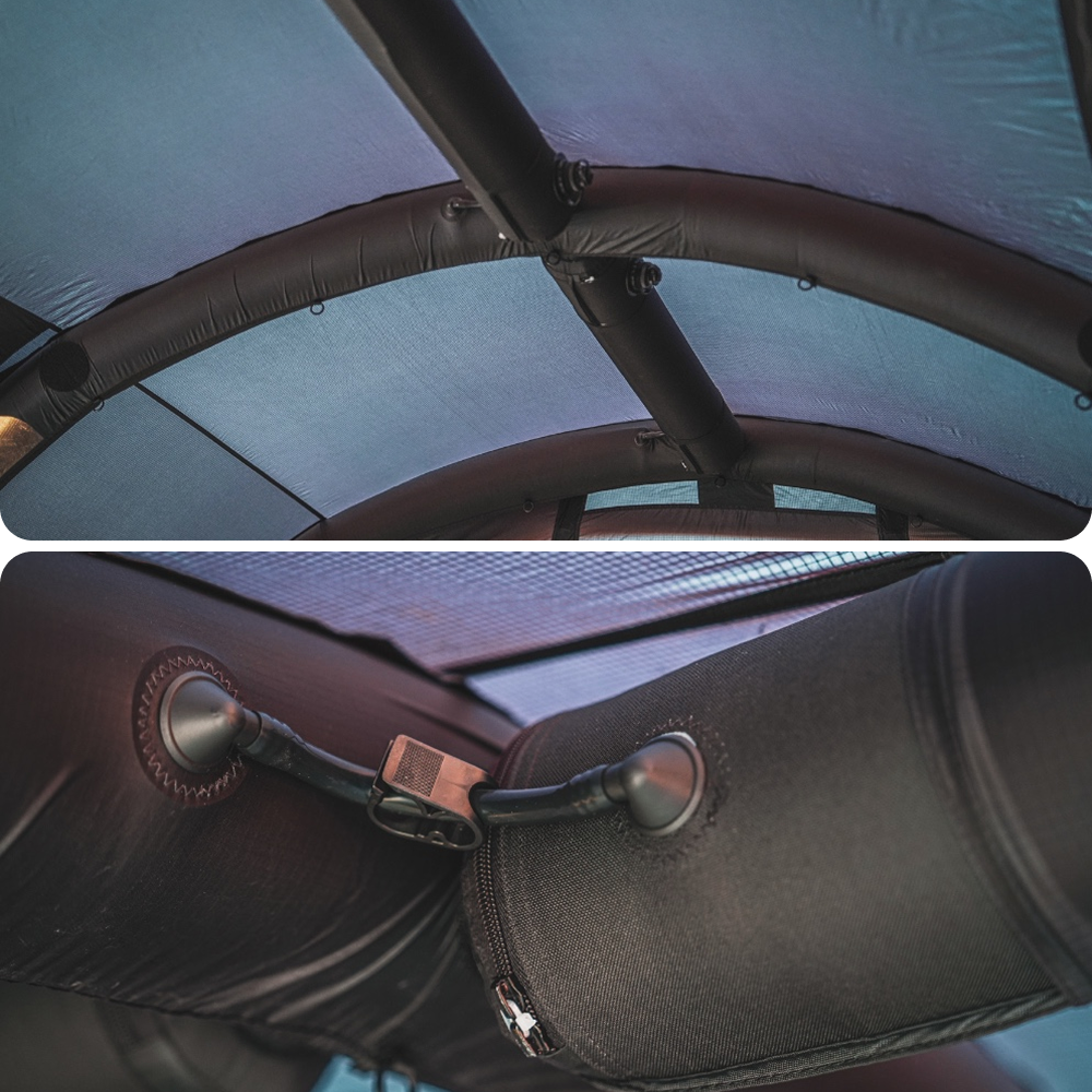 The Air Shelter TN600 combines a panoramic upright pole design with a one-point Air-Connect system for effortless setup and expansive open views.