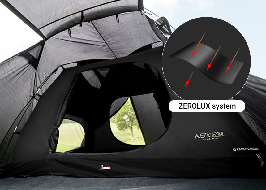 Equipped with the ZEROLUX system, the inner tent blocks UV rays and reduces light penetration, ensuring a cool and comfortable sleep environment.