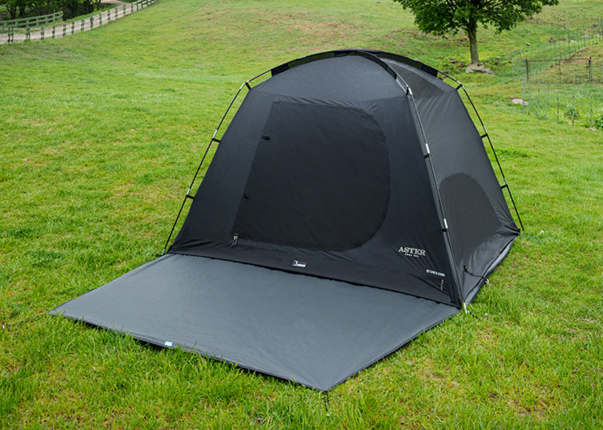 The Aster Dome Neo features a sleek black dome with a quick 3-pole setup, extended ground sheet for extra space and protection, and the Zero-Lux inner system with mesh windows for a comfortable, ventilated camping experience.