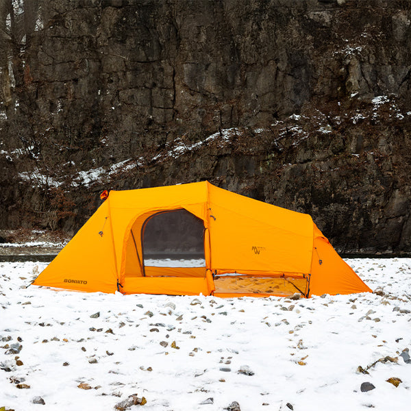 The MinimalWorks Boniatto is a tunnel-style tent for 2–3 people. It offers efficient space utilization for a comfortable and effortless camping experience.