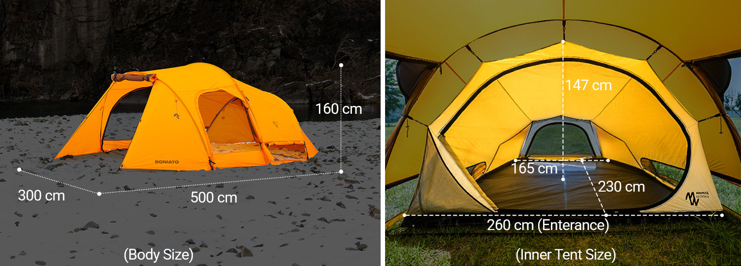 • Inner: 90.6" × 102.4" × 57.9" (230 × 260 × 147cm)