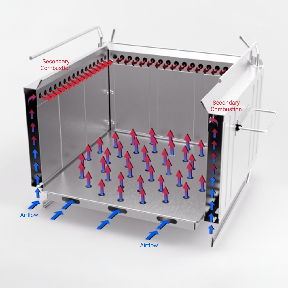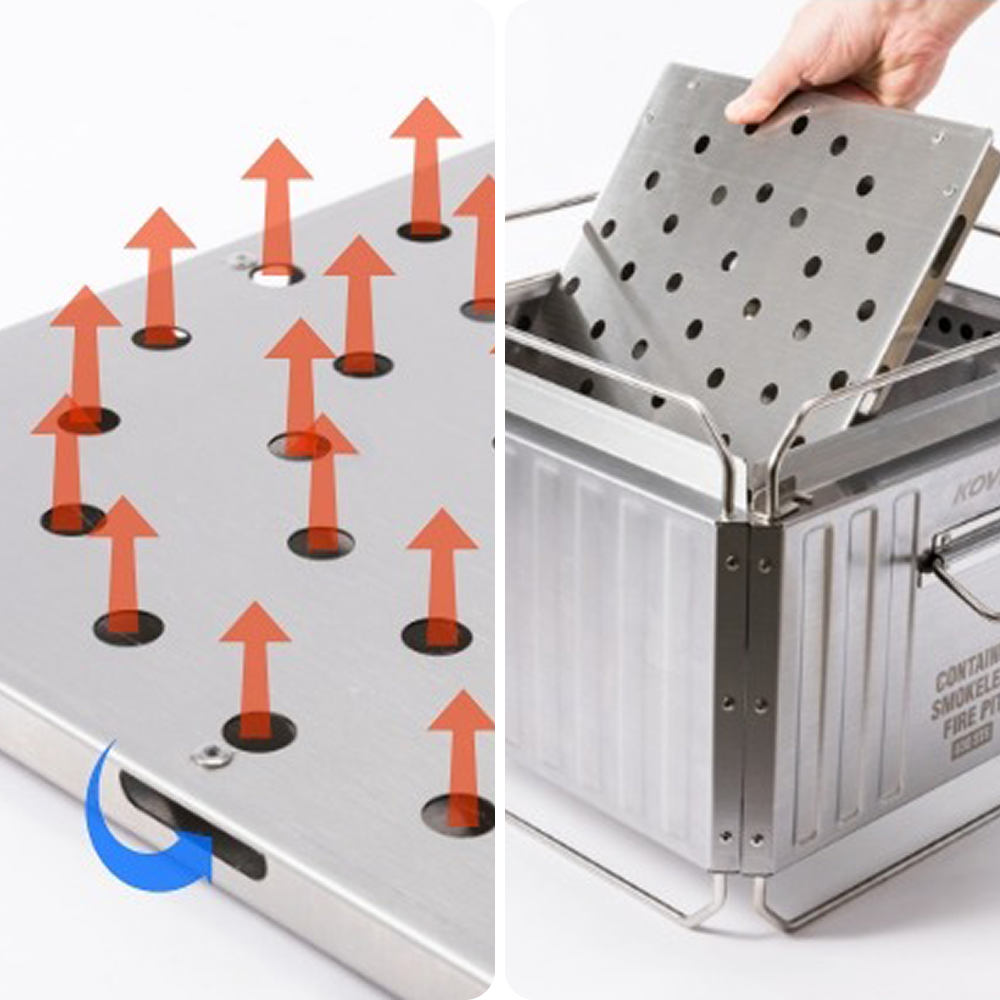The Double Combustion Fire Pit minimizes smoke and fuel consumption while maintaining a clean, high-temperature flame. Its advanced airflow design ensures efficient heat release, making it perfect for both cooking and warmth. Enjoy a more comfortable, versatile, and smoke-free campfire wherever you go.