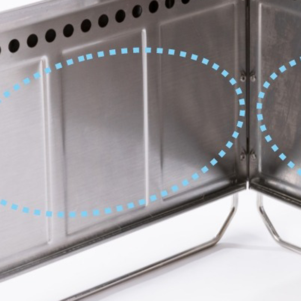 The dual-structured stainless base features precision side perforations that promote natural airflow. This efficient ventilation system boosts combustion, ensuring cleaner, stronger flames while maintaining durability through repeated high-heat use.