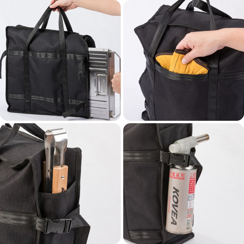 The durable storage case features a convenient side-loading design, making it easy to pack and retrieve your fire pit without hassle. With built-in utility pockets and buckle webbing, it provides extra space for small tools or accessories—perfect for organized and efficient transport.