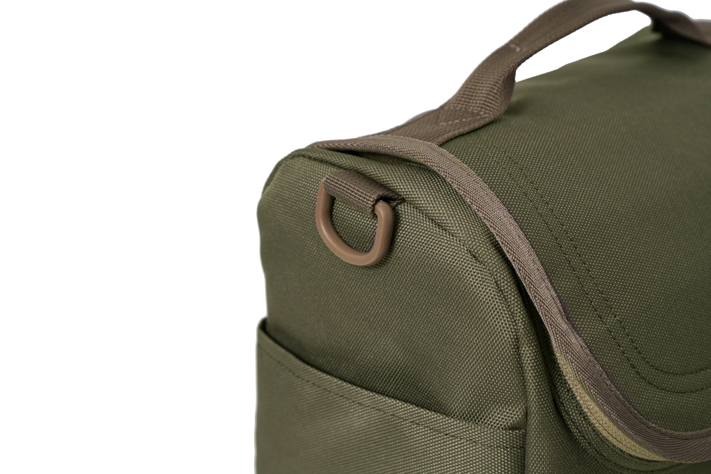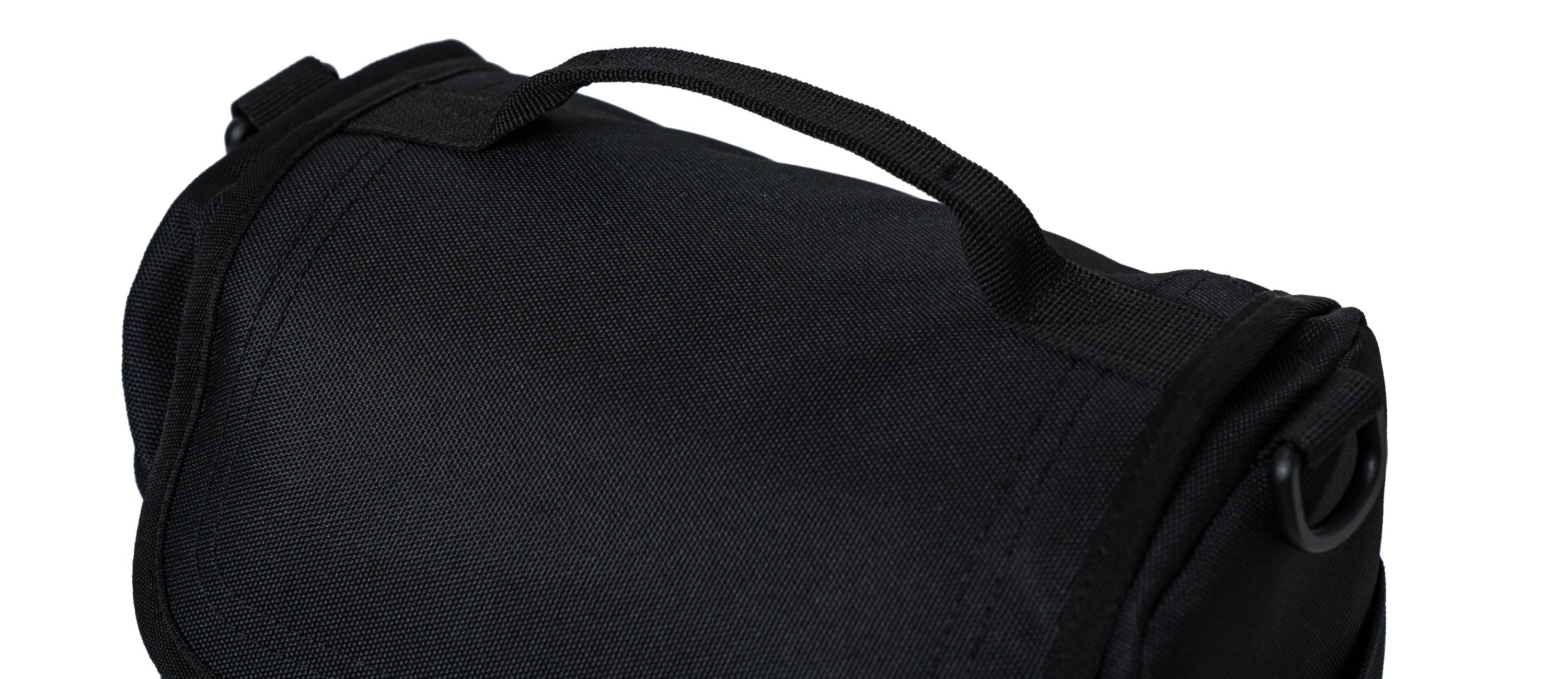 - Webbing handle and D-ring for carrying accessories