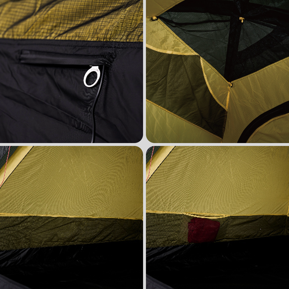 • Main Fly Fabric: N20D Double Ripstop Nylon (Dual-Side Silicone Coated, Tear Strength 9kg, Waterproof Rating 5,000mm