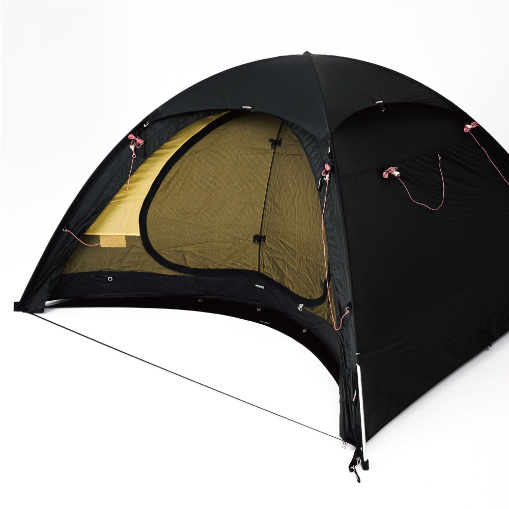 The Double Wall Tent C240 features an easy toggle connection system for quick, tool-free setup, supported by lightweight yet durable DAC PRESSFIT aluminum poles. Its 4-way zipper system and detachable mesh or TPU windows allow customizable ventilation and weather protection for all-season comfort.